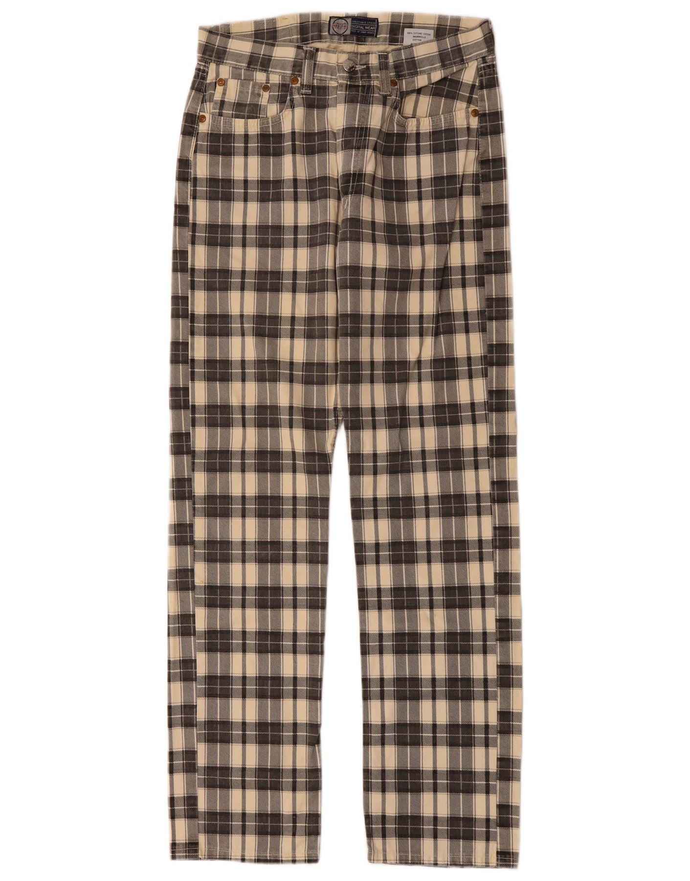Prendi due pantaloni casual dritti da uomo W31 L32 in cotone a quadri beige