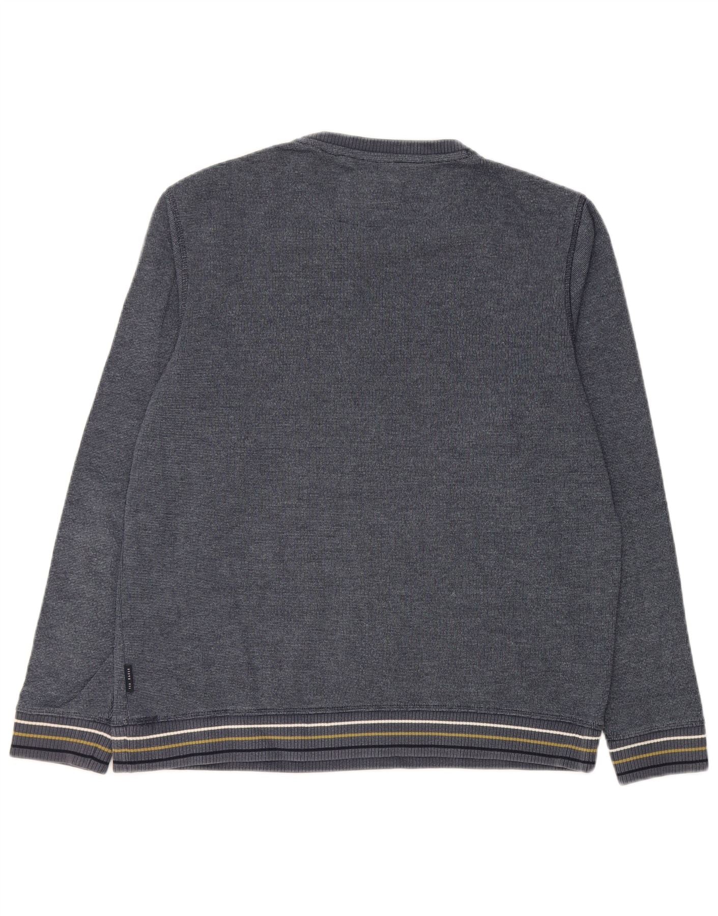 TED BAKER Maglione maglione girocollo da uomo taglia 4 grande cotone blu navy