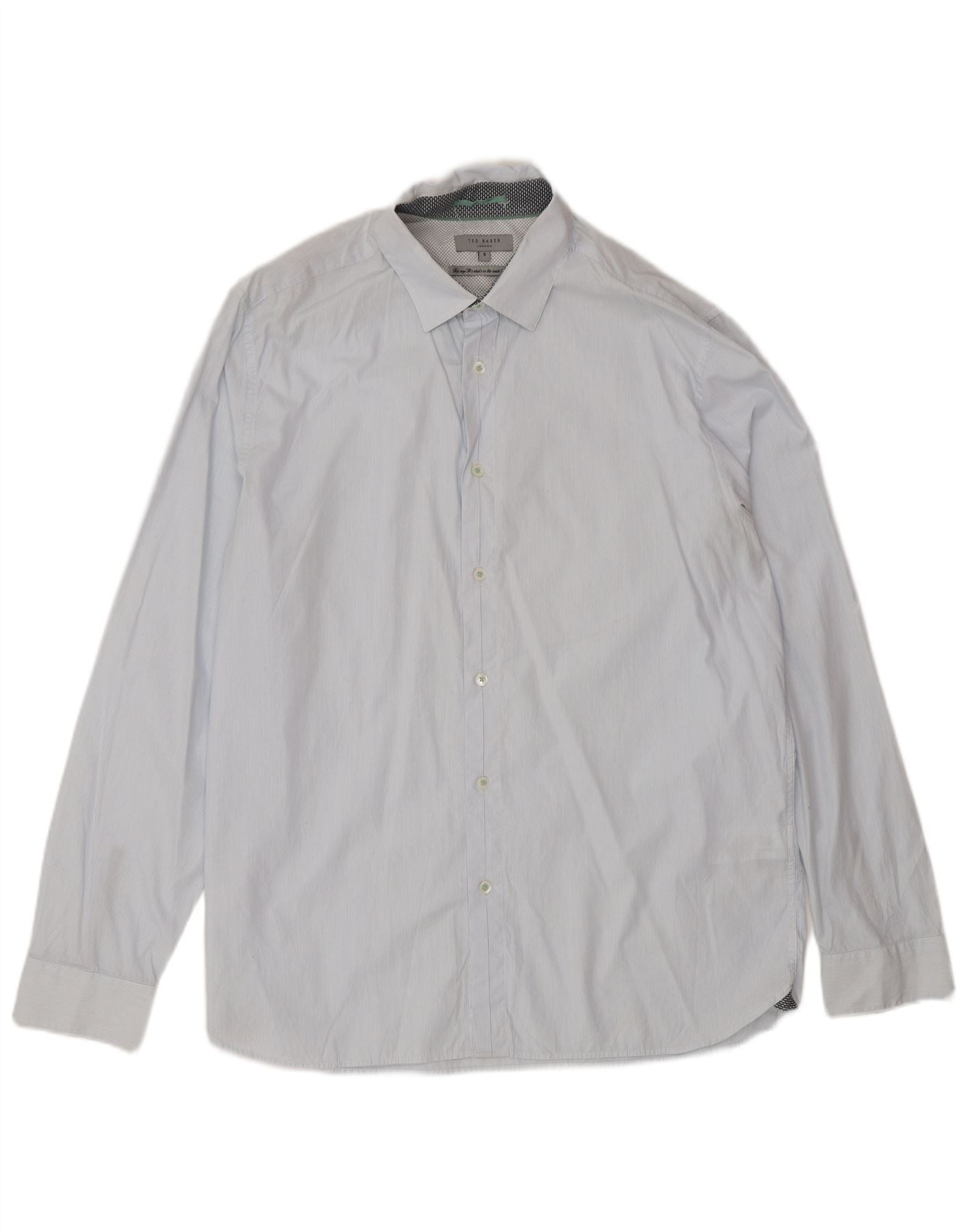 Camicia da uomo Ted Baker taglia 5 XL cotone gessato blu