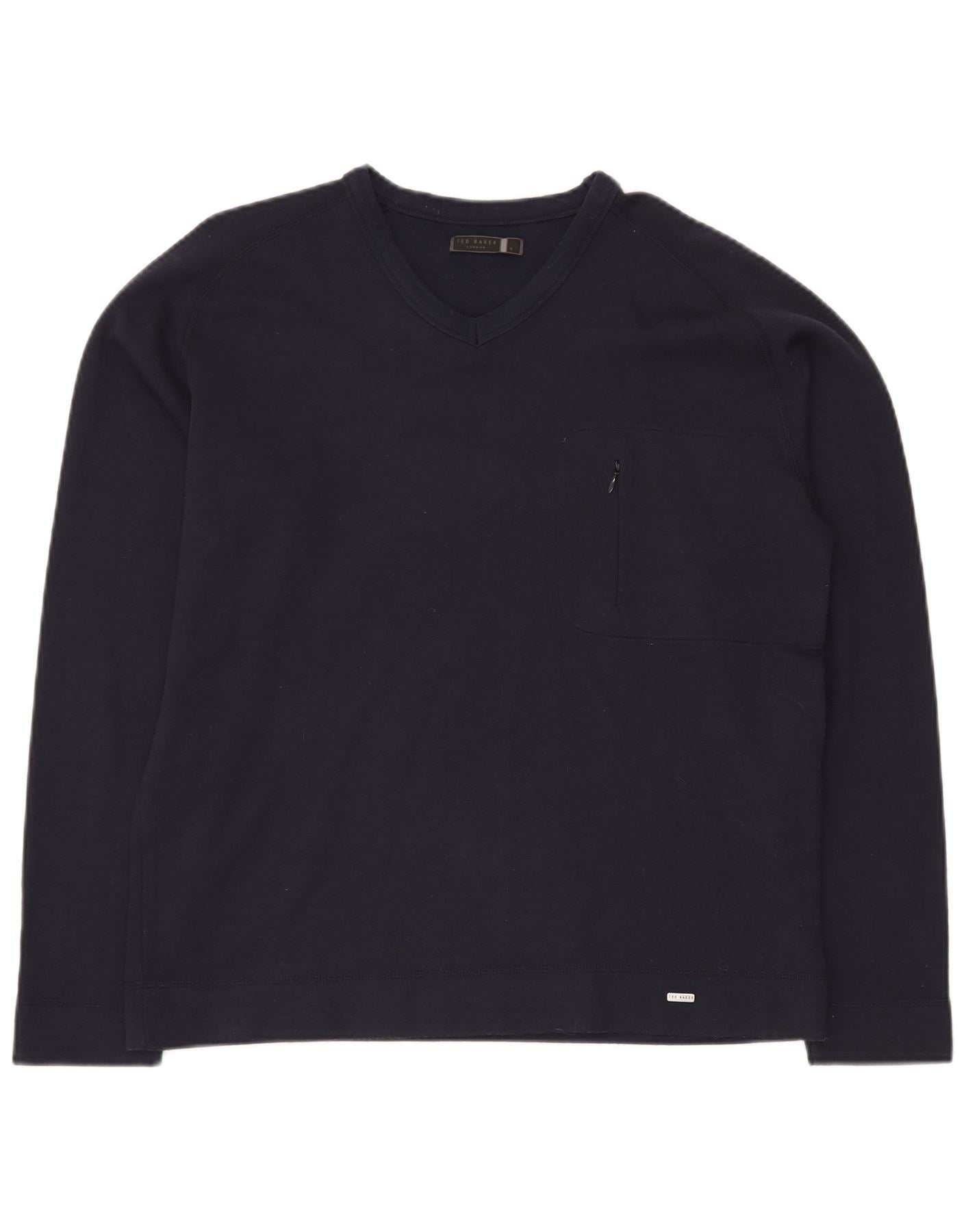 TED BAKER Maglione da uomo con scollo a V taglia 5 XL in cotone blu navy