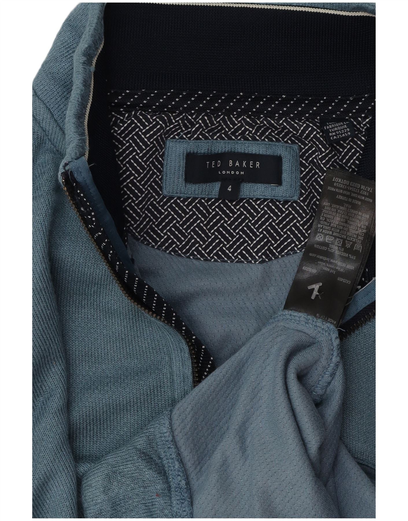 TED BAKER Felpa da uomo con collo con zip, taglia 4, grande, cotone blu