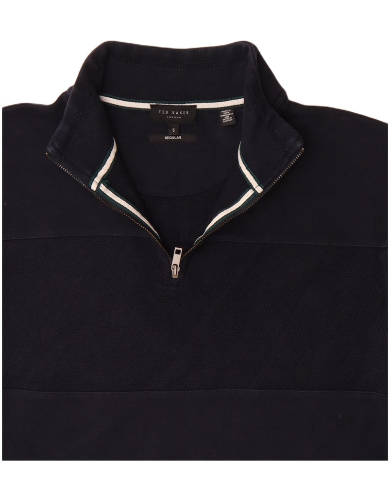 TED BAKER Mens Zip Neck Top Long Sleeve Size 5 Large Navy Blue Cotton