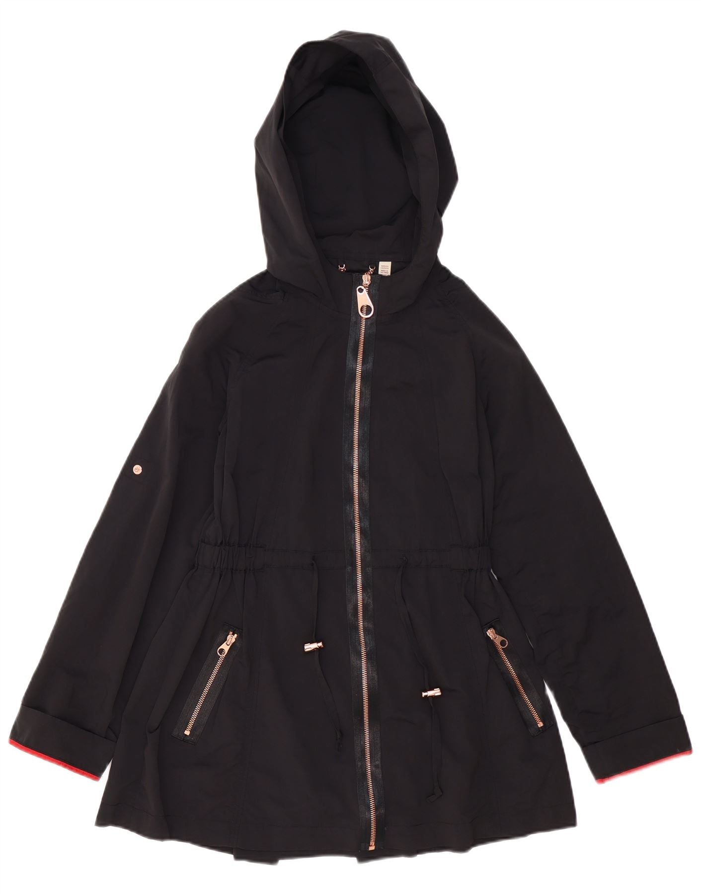 TED BAKER Womens Oversized Hooded Rain Jacket Size 0 2XS Black Polyester
