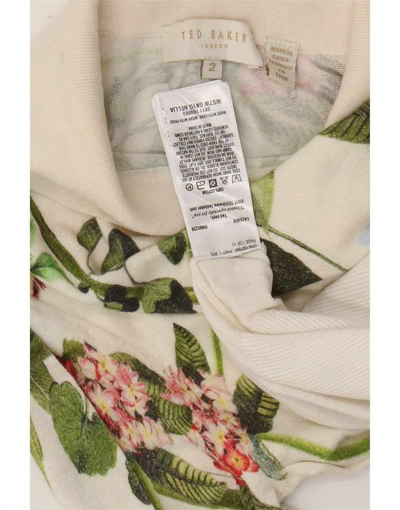 TED BAKER Womens Oversized Polo Neck Jumper Sweater Size 2 Small Off White