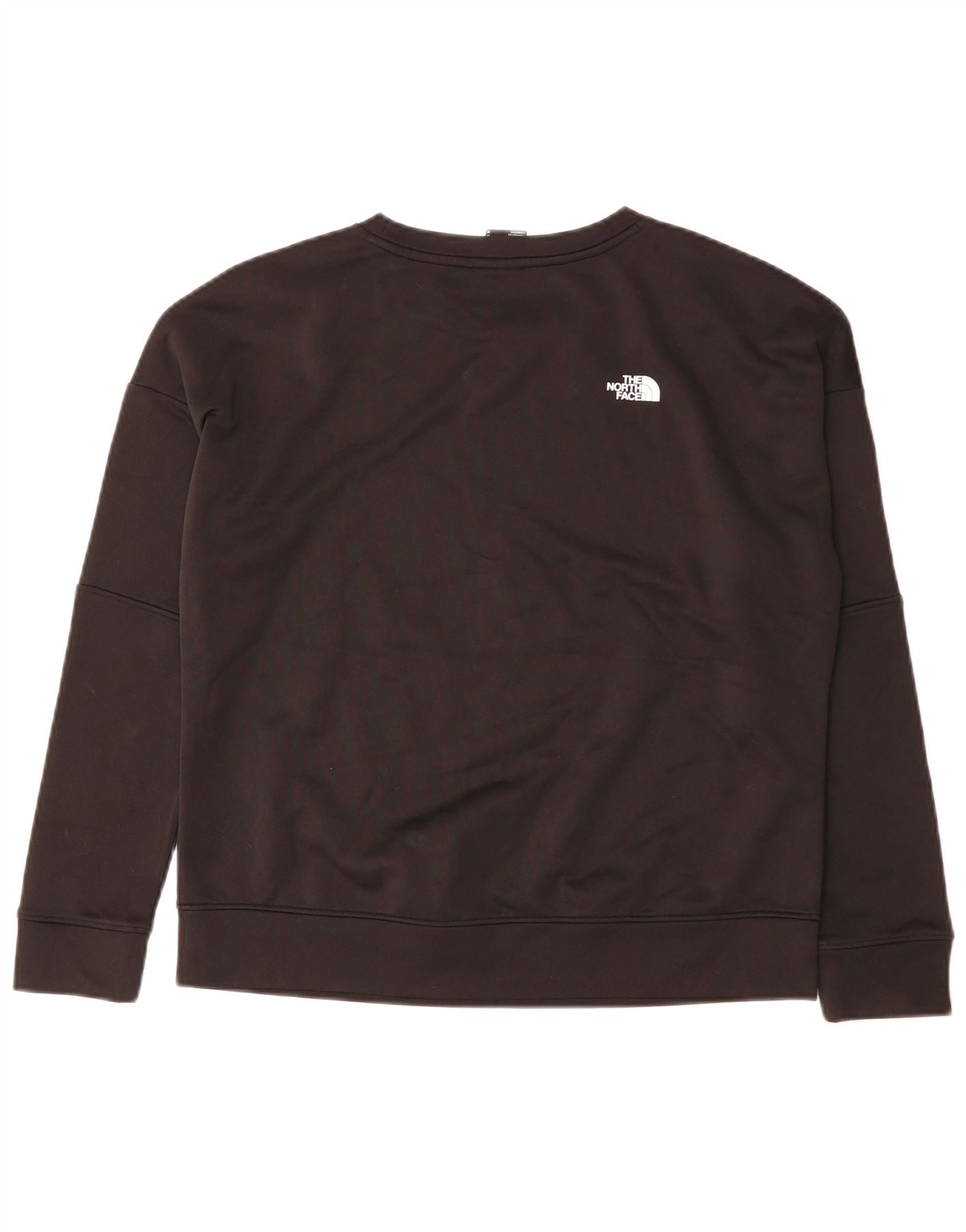 - Descrizione dell'IA: Questo maglione in felpa da donna The North Face è realizzato in tessuto jersey nero, offrendo una sensazione morbida e confortevole. Presenta un classico girocollo e maniche lunghe con polsini alle estremità. Il design a pullover garantisce una vestibilità regolare. Un logo grafico prominente adorna la parte anteriore. Il marchio aggiuntivo è sottilmente integrato lungo le spalle e le maniche, creando un distintivo logo a nastro.