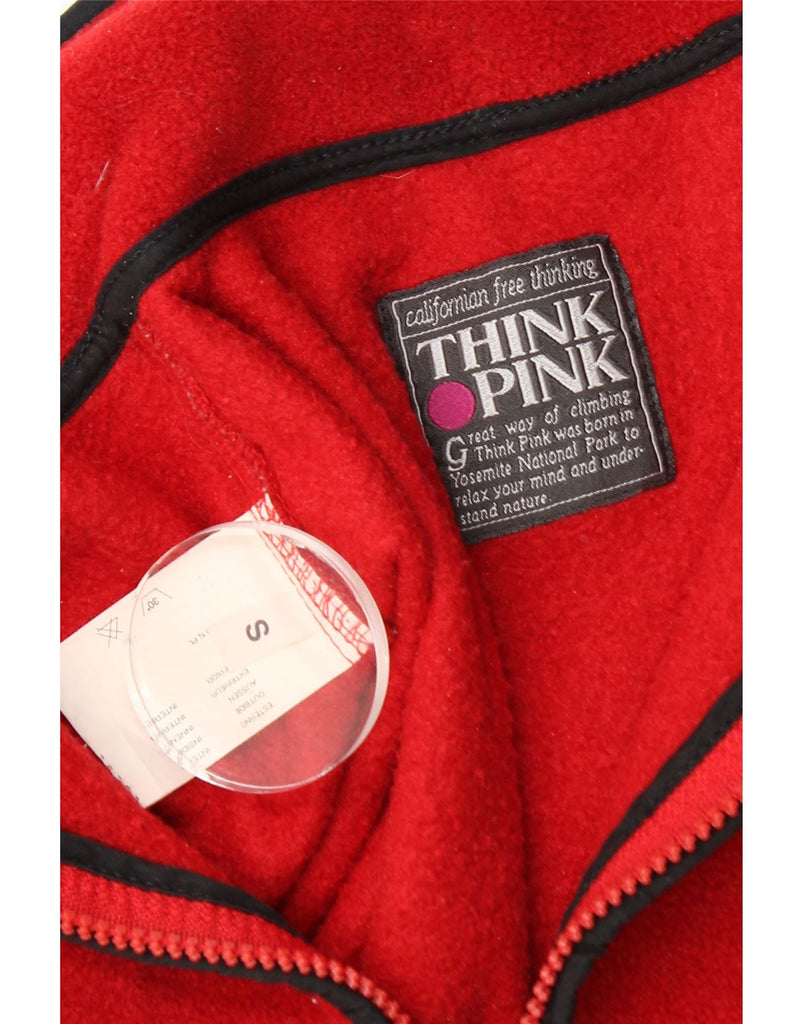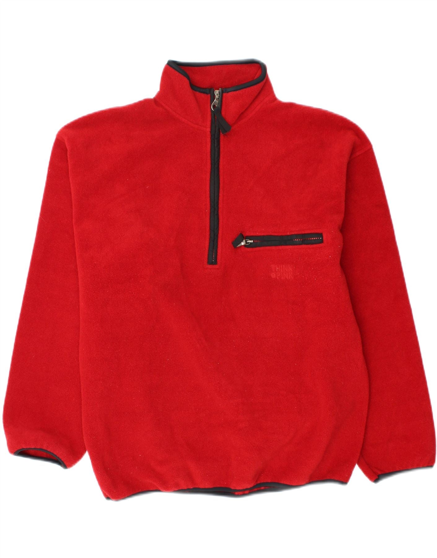 THINK PINK Maglione in pile da uomo con zip e collo piccolo in poliestere rosso