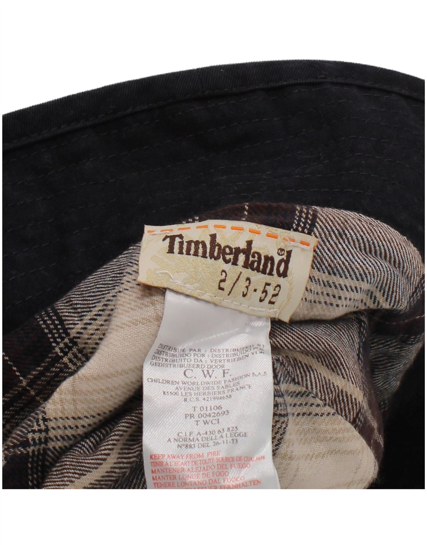 TIMBERLAND Boys Graphic Corduroy Bucket Hat 2-3 Years Black Cotton Classic