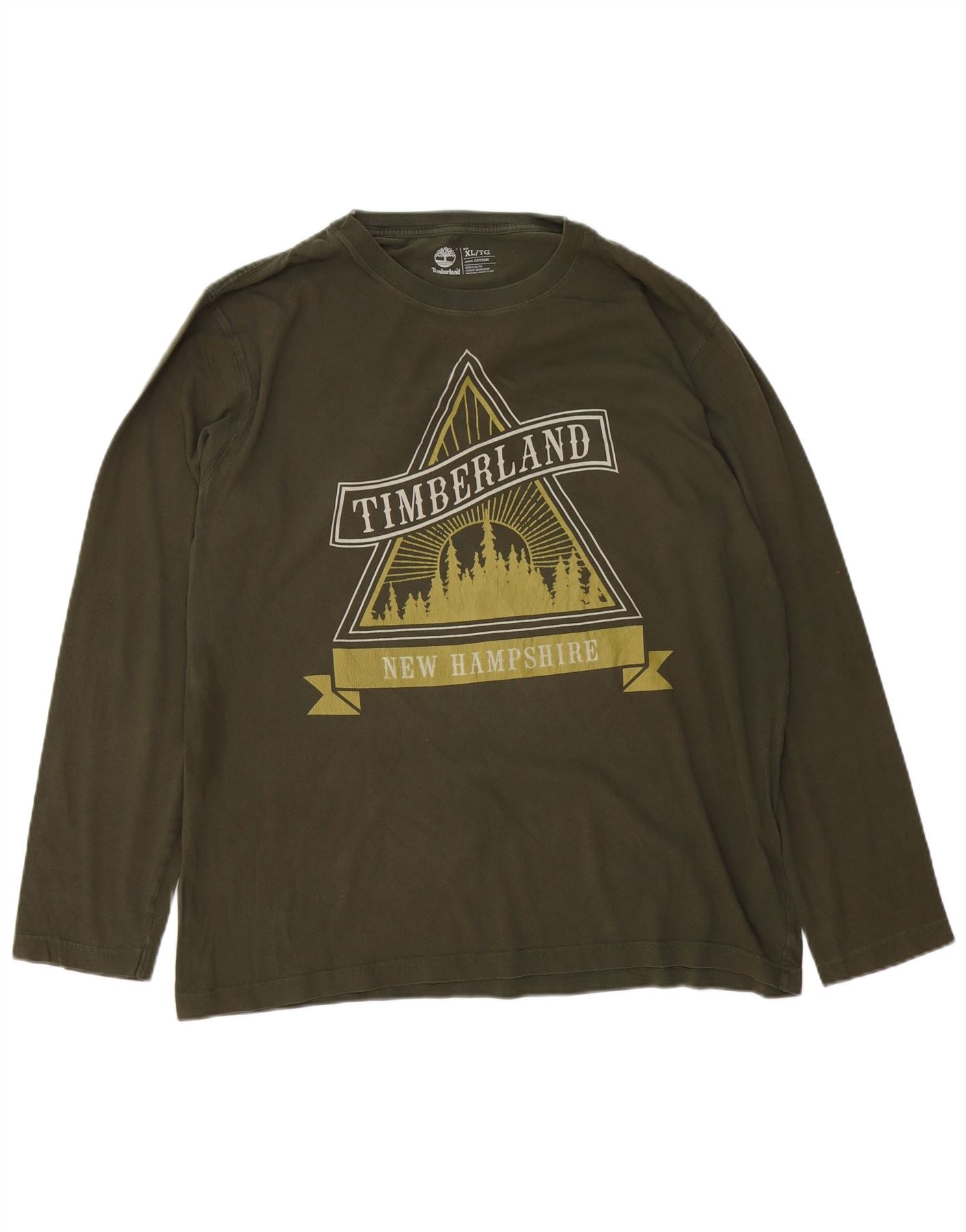 TIMBERLAND Top grafico da uomo vestibilità regolare manica lunga XL cotone kaki