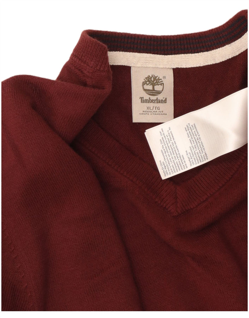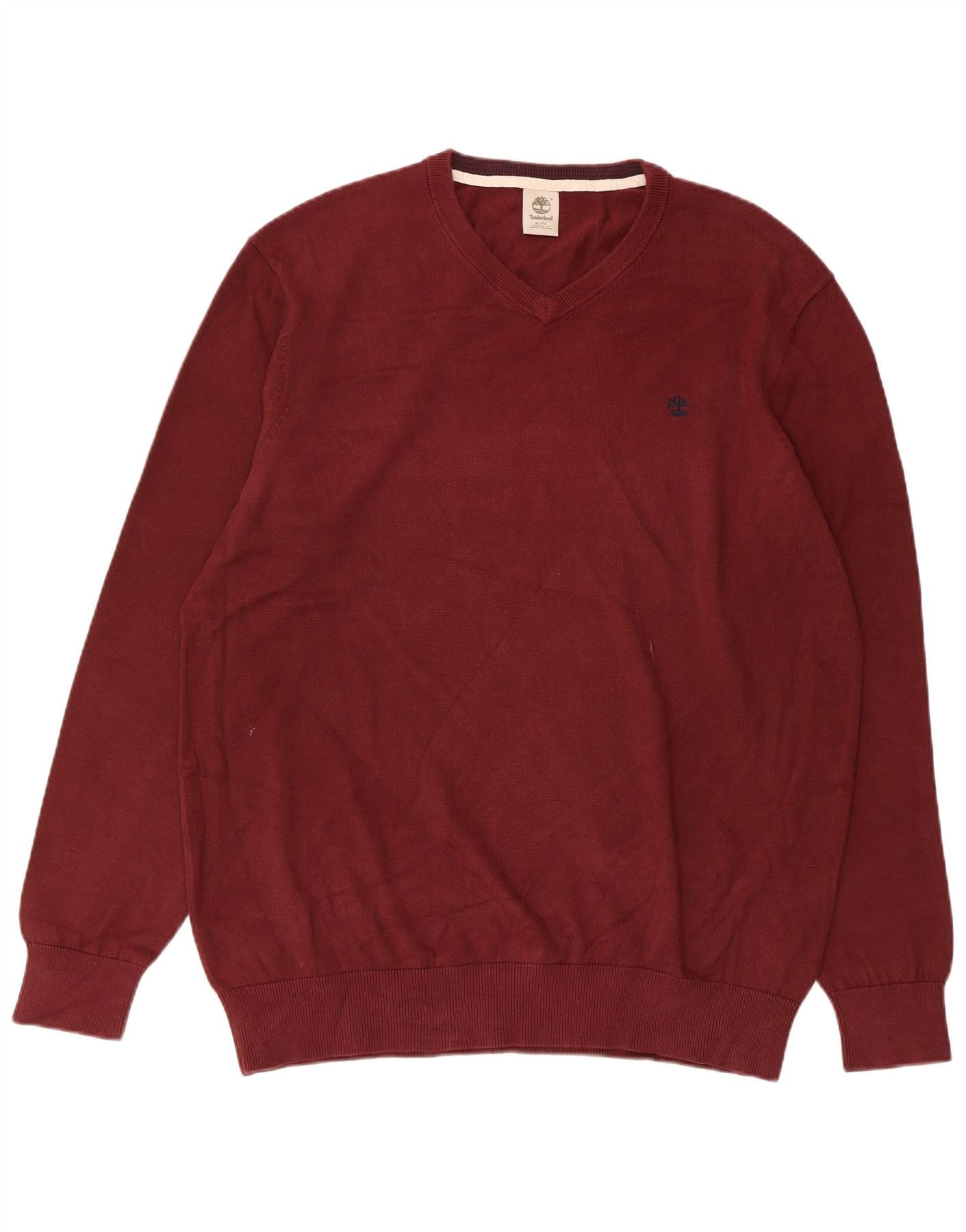 Maglione da uomo con scollo a V vestibilità regolare TIMBERLAND XL in cotone bordeaux
