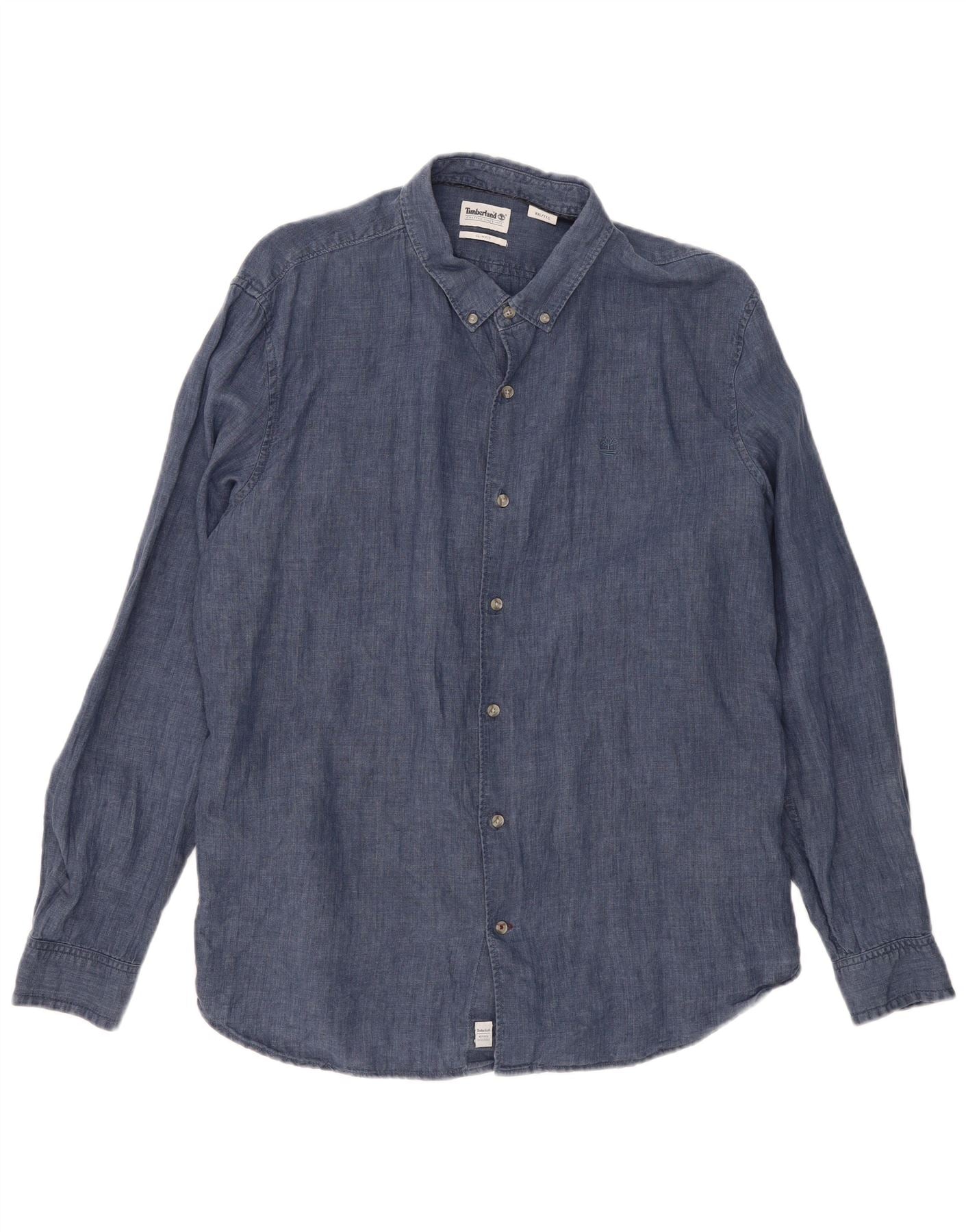 Camicia slim fit da uomo TIMBERLAND 2XL Lino blu navy