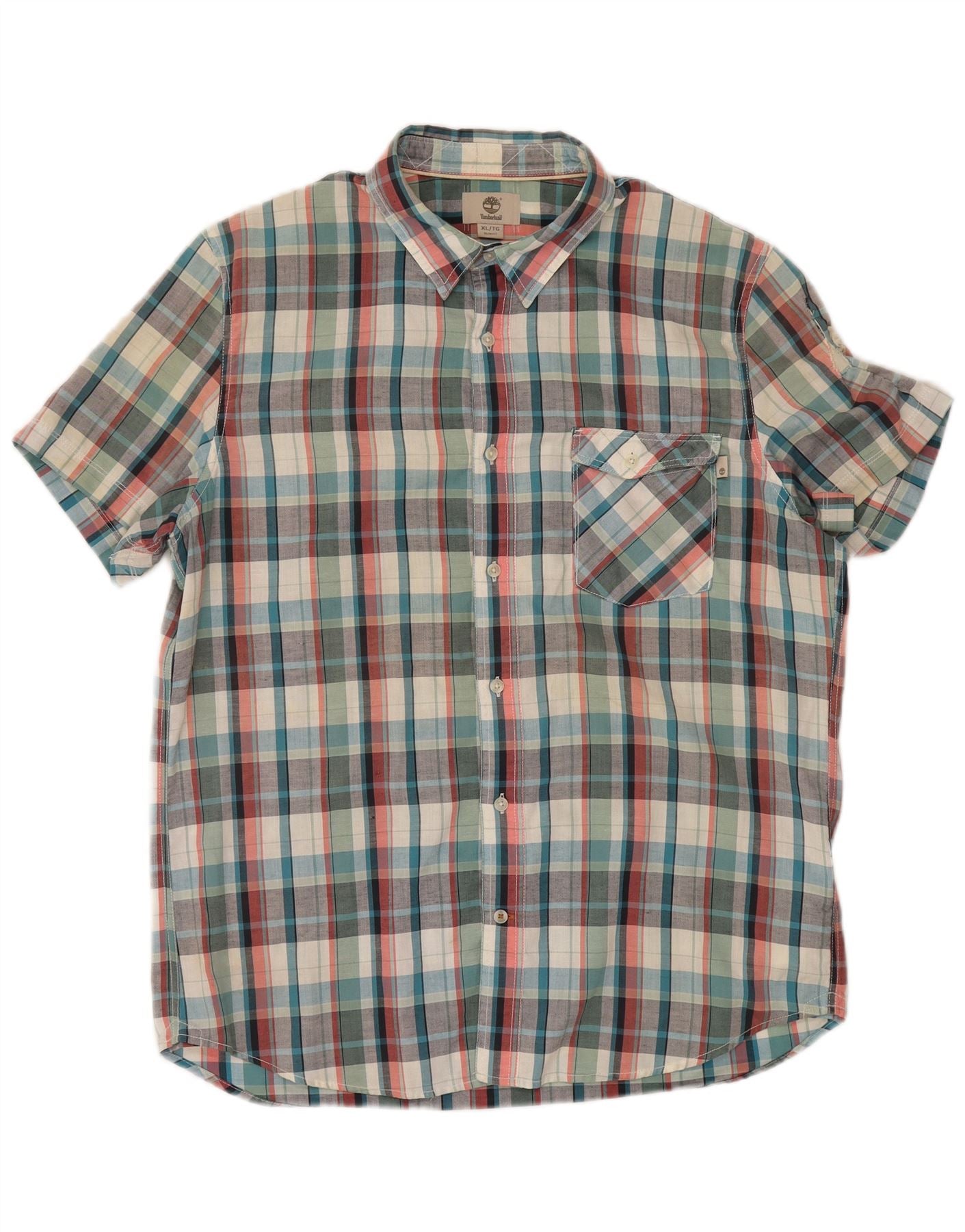 TIMBERLAND Camicia a maniche corte slim fit da uomo XL in cotone a quadri multicolore