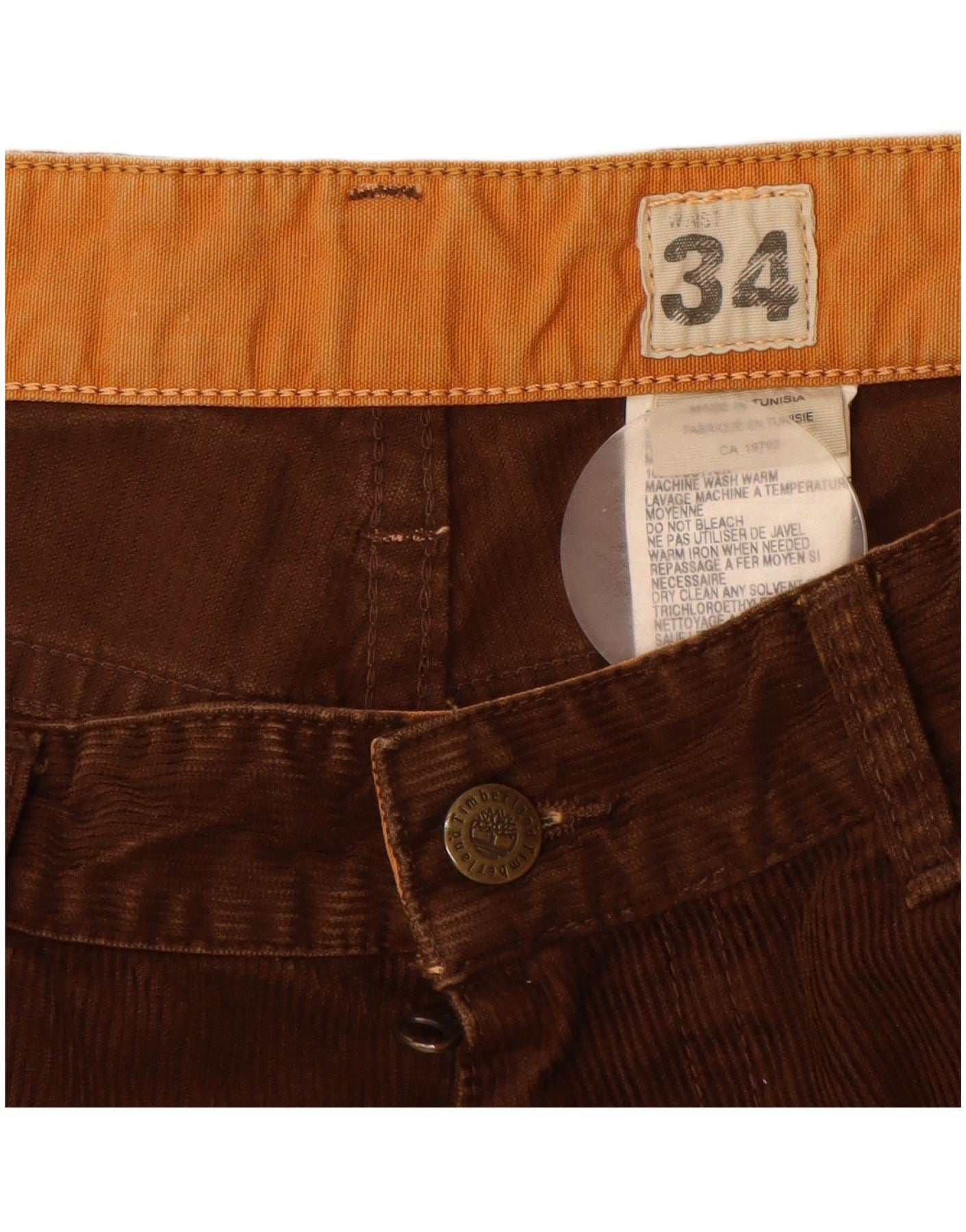 Pantaloni dritti da uomo in velluto a coste TIMBERLAND W34 L32 cotone marrone