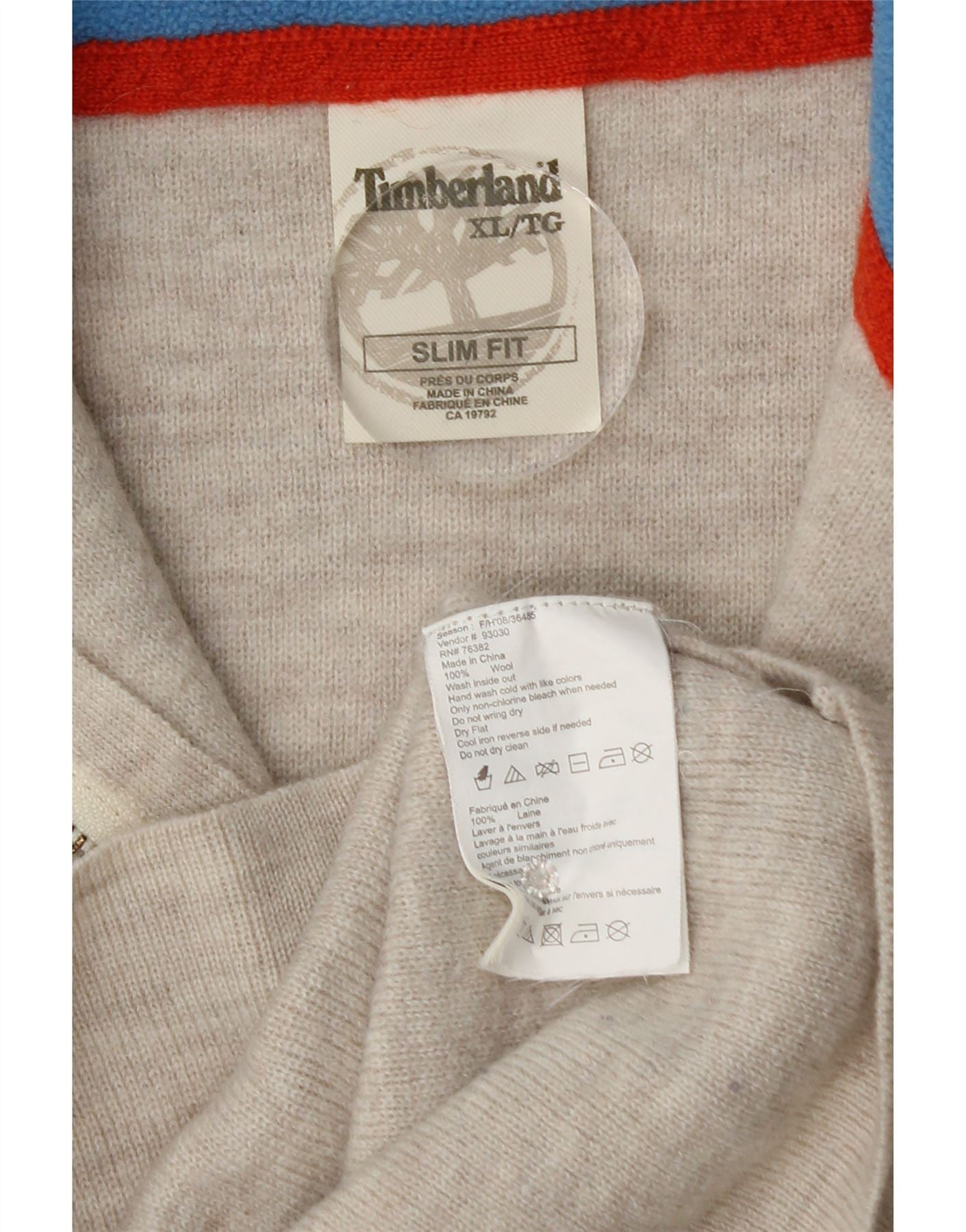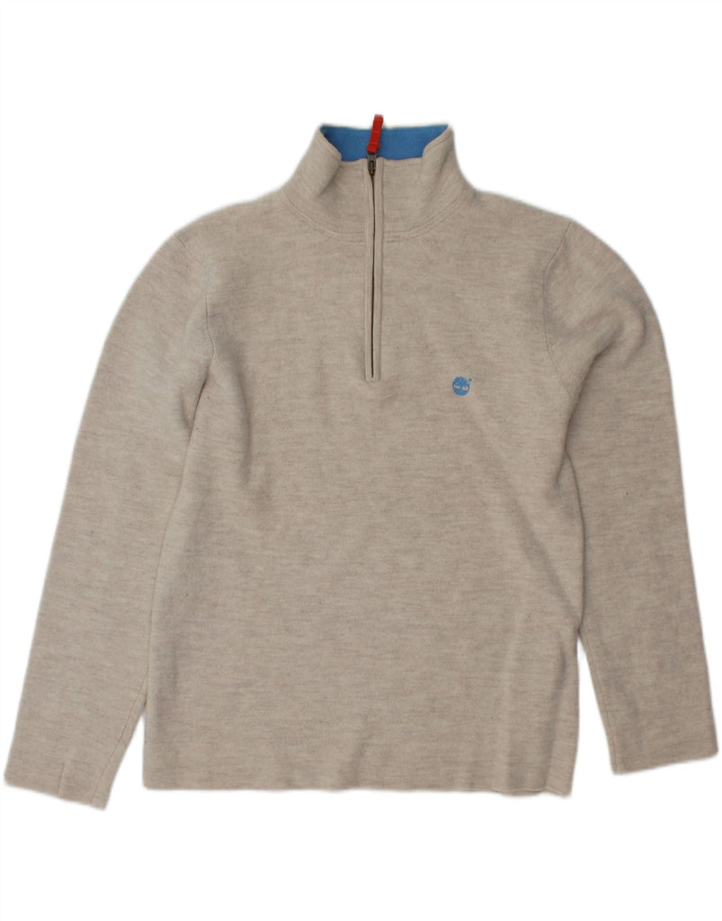 TIMBERLAND Maglione da donna slim fit con collo con zip UK 18 XL Beige chiazzato