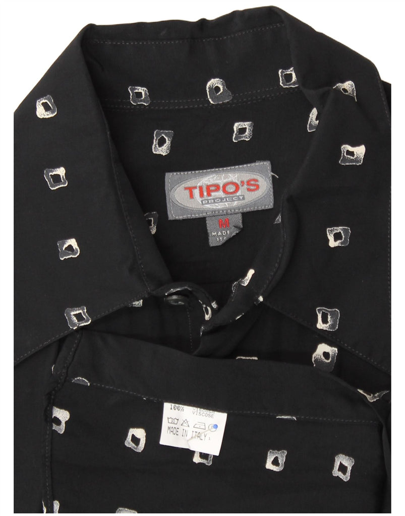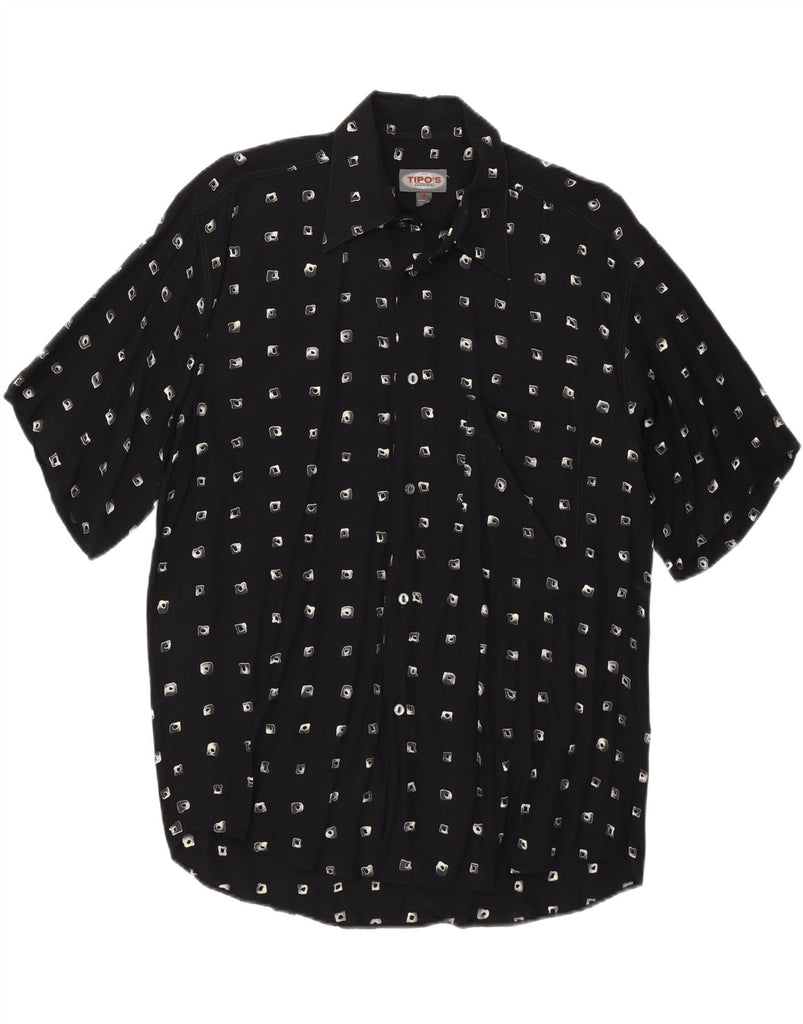 TIPO' S Camicia a maniche corte da uomo in viscosa geometrica nera media