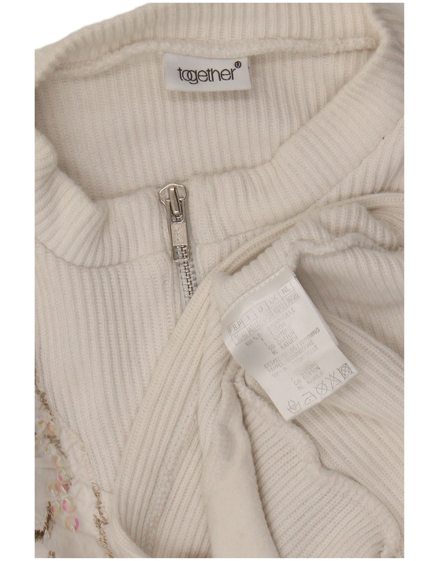 Maglione maglione con collo con zip grafica da donna Together UK 10/12 Bianco medio