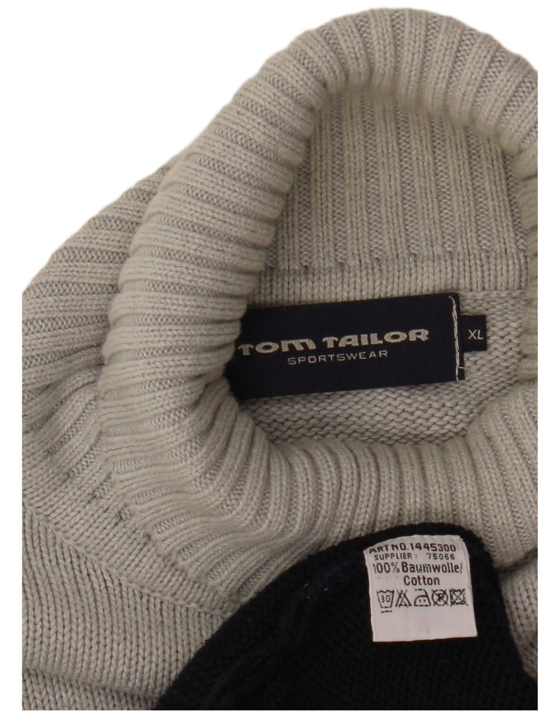 TOM TAILOR Mens Roll Neck Jumper Sweater XL Grey Fair Isle Cotton