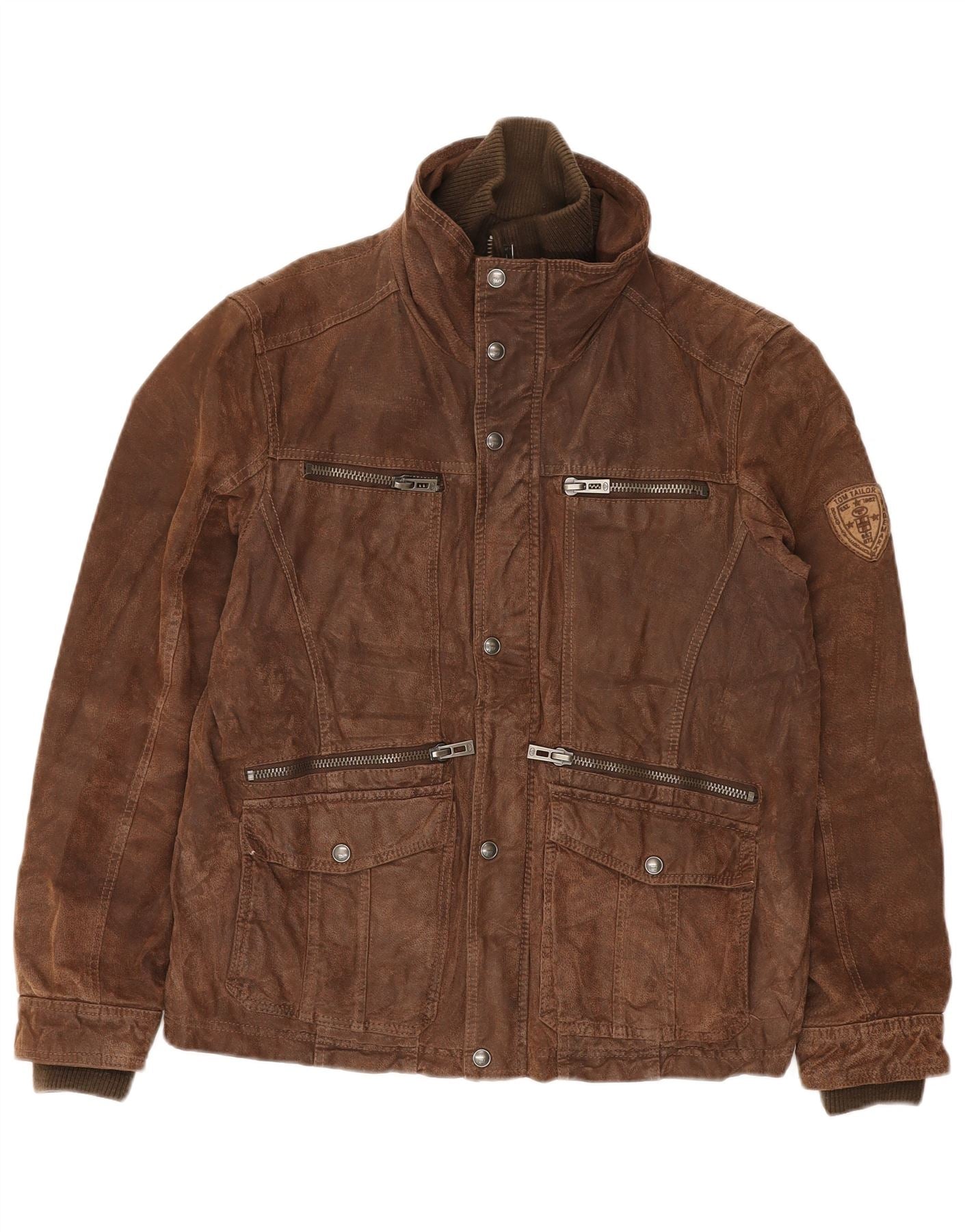 TOM TAILOR Mens Suede Jacket UK 38 Medium Brown Leather