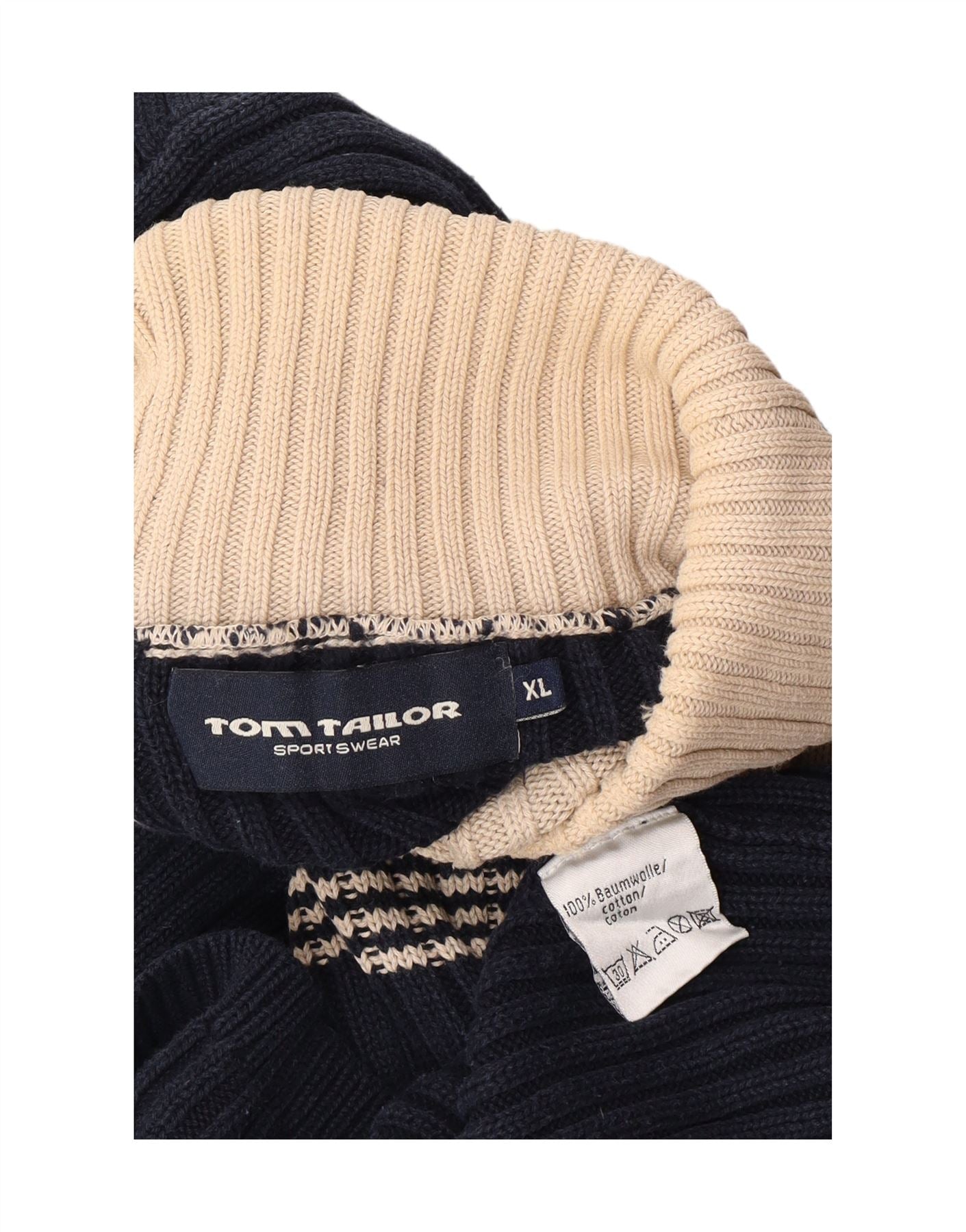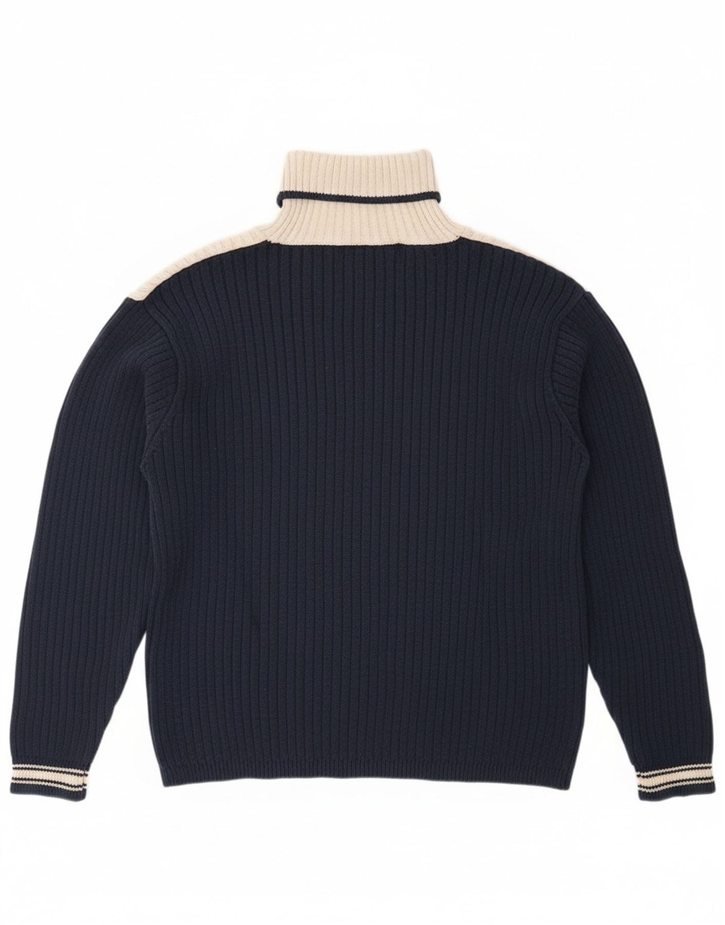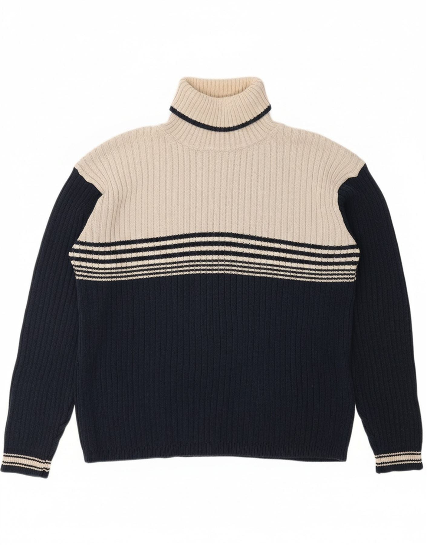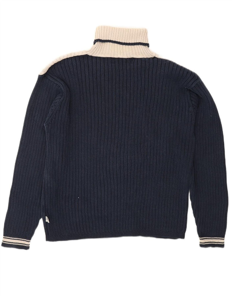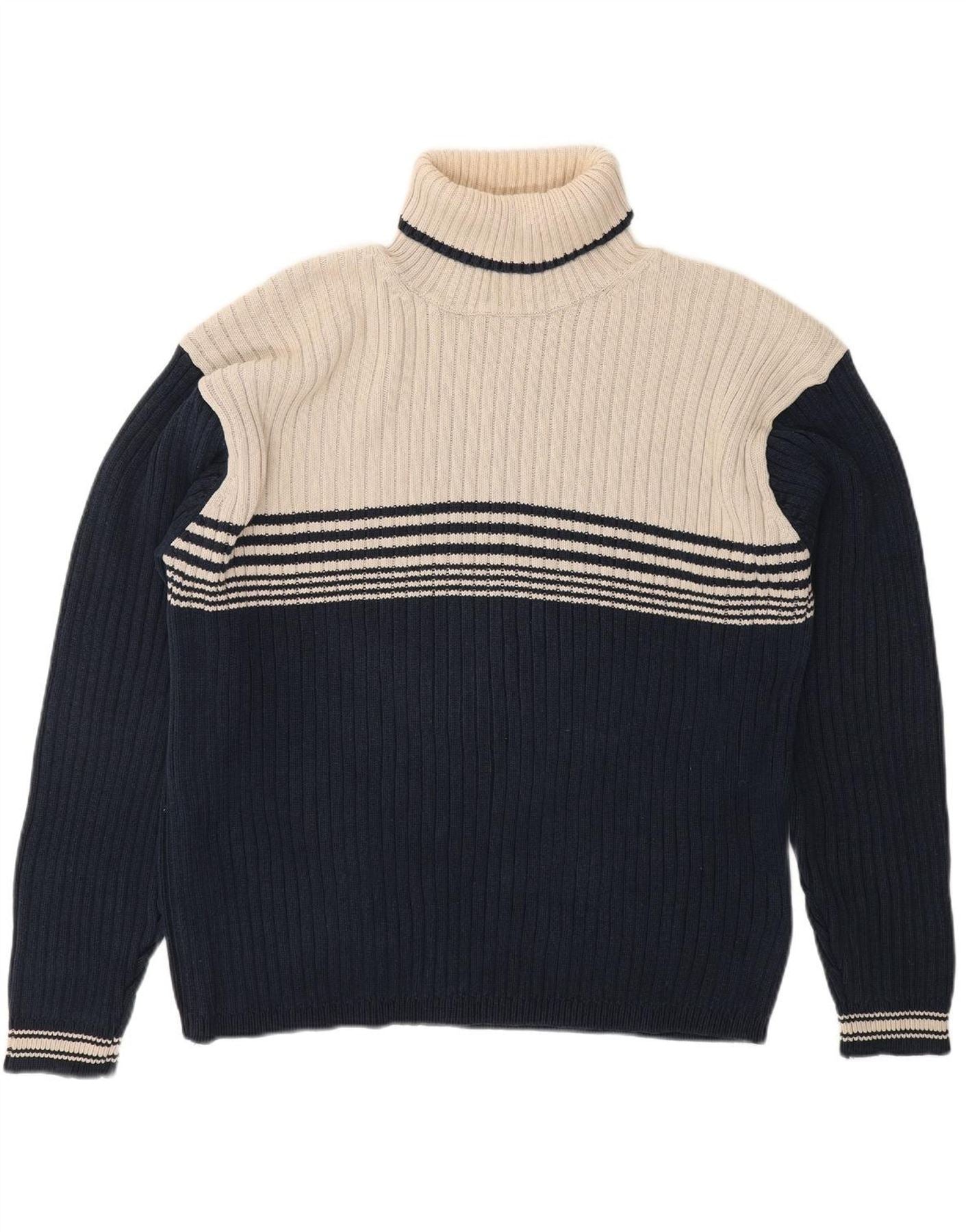 TOM TAILOR Womens Roll Neck Jumper Sweater UK 18 XL Navy Blue Colourblock