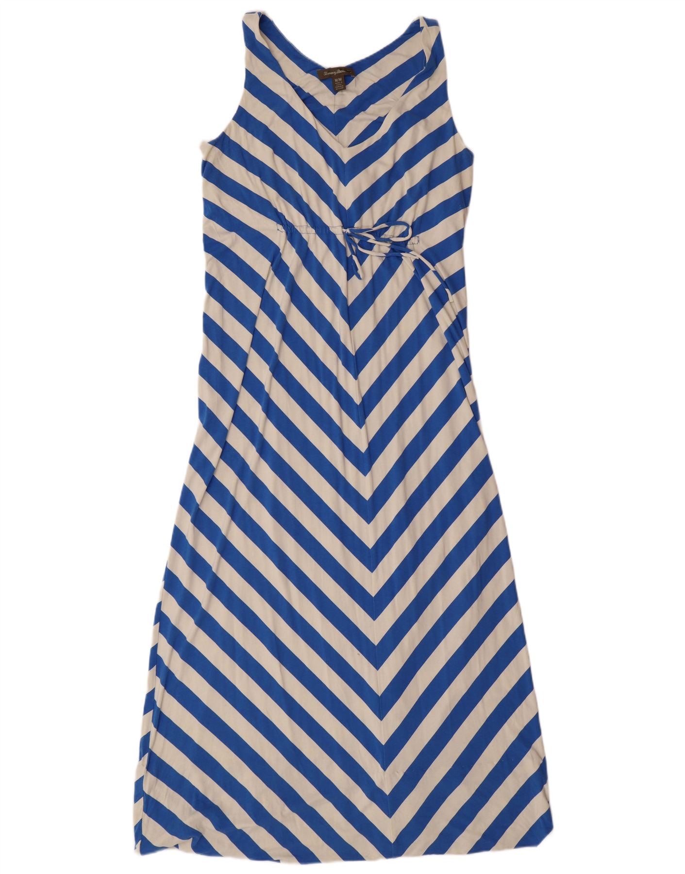 TOMMY BAHAMA Abito lungo senza maniche da donna UK 12 Blu medio a righe