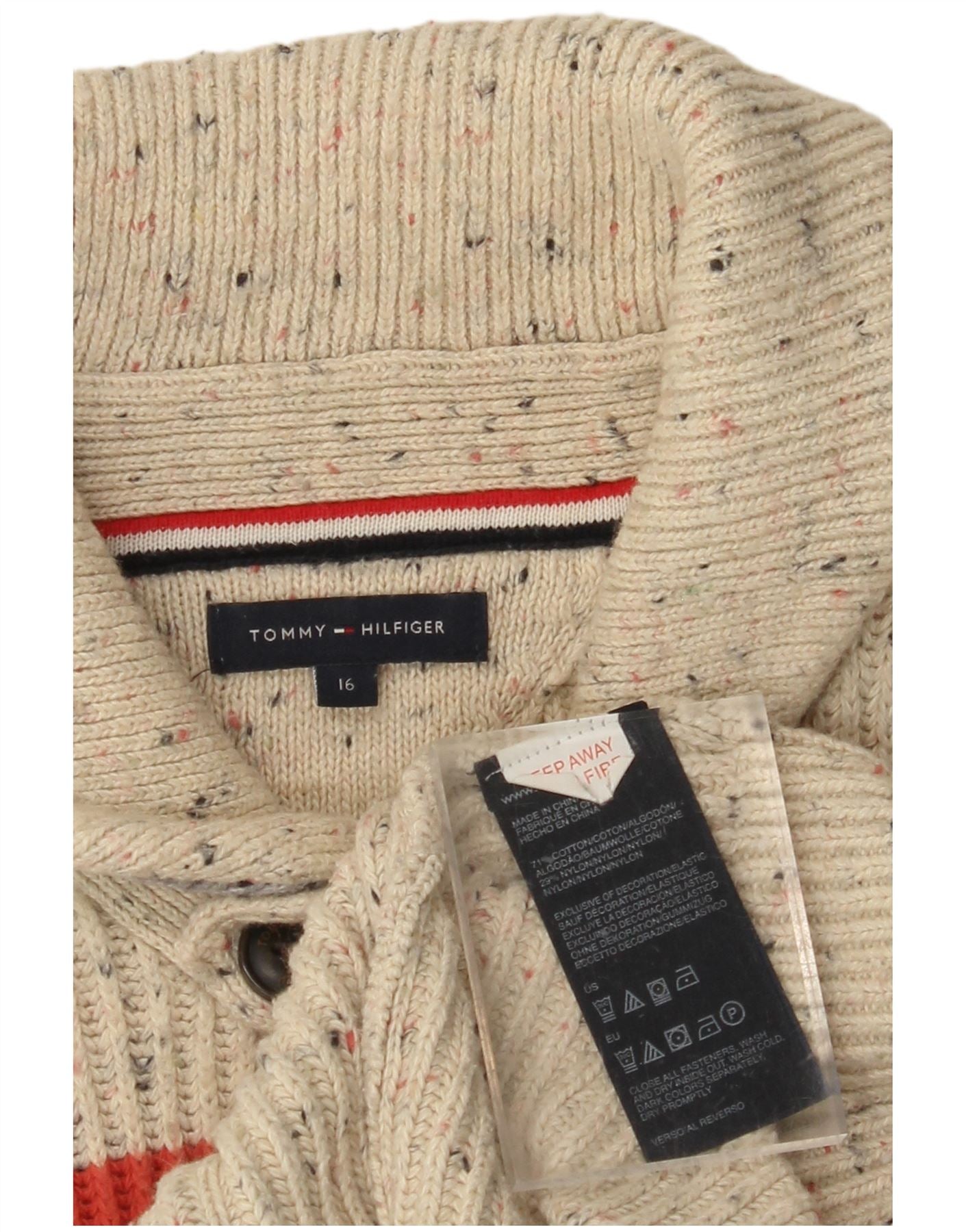 TOMMY HILFIGER Maglione cardigan per ragazzi 15-16 anni Cotone color block beige