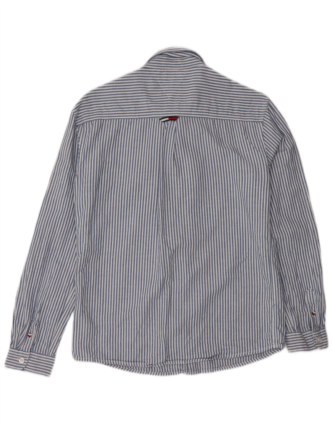 - Descrizione dell'IA: Questa camicia da ragazzo Tommy Hilfiger è realizzata in un comodo misto cotone e canapa. Presenta un classico motivo a strisce blu e bianche. Lo scollo con colletto e l'intera abbottonatura sul davanti offrono un look elegante e senza tempo. Le maniche lunghe con polsini abbottonati completano il design. Una singola tasca sul petto e il logo ricamato aggiungono dettagli discreti. La vestibilità regolare garantisce un abbigliamento comodo per lo stile di tutti i giorni.