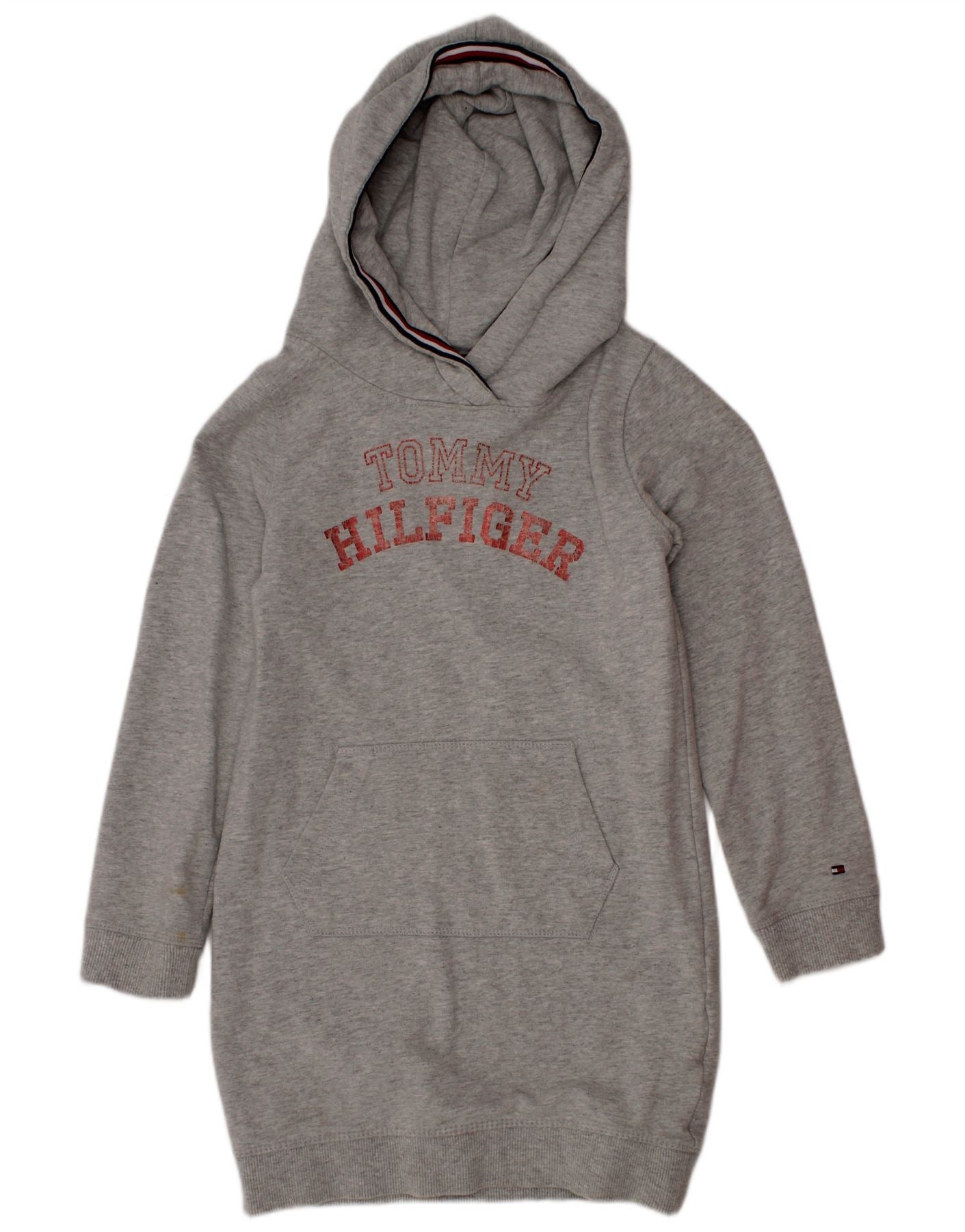 TOMMY HILFIGER Abito con cappuccio grafico per ragazze 5-6 anni in cotone chiazzato grigio