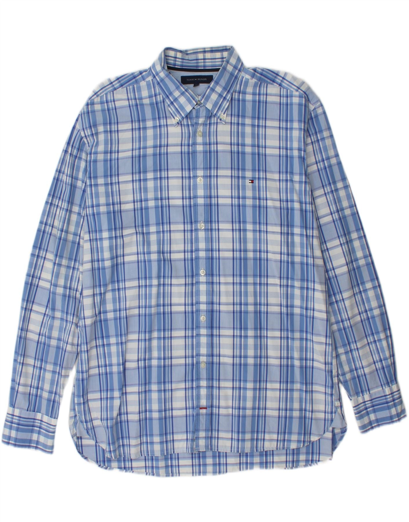 TOMMY HILFIGER Camicia a quadri da uomo XL in cotone a quadri blu