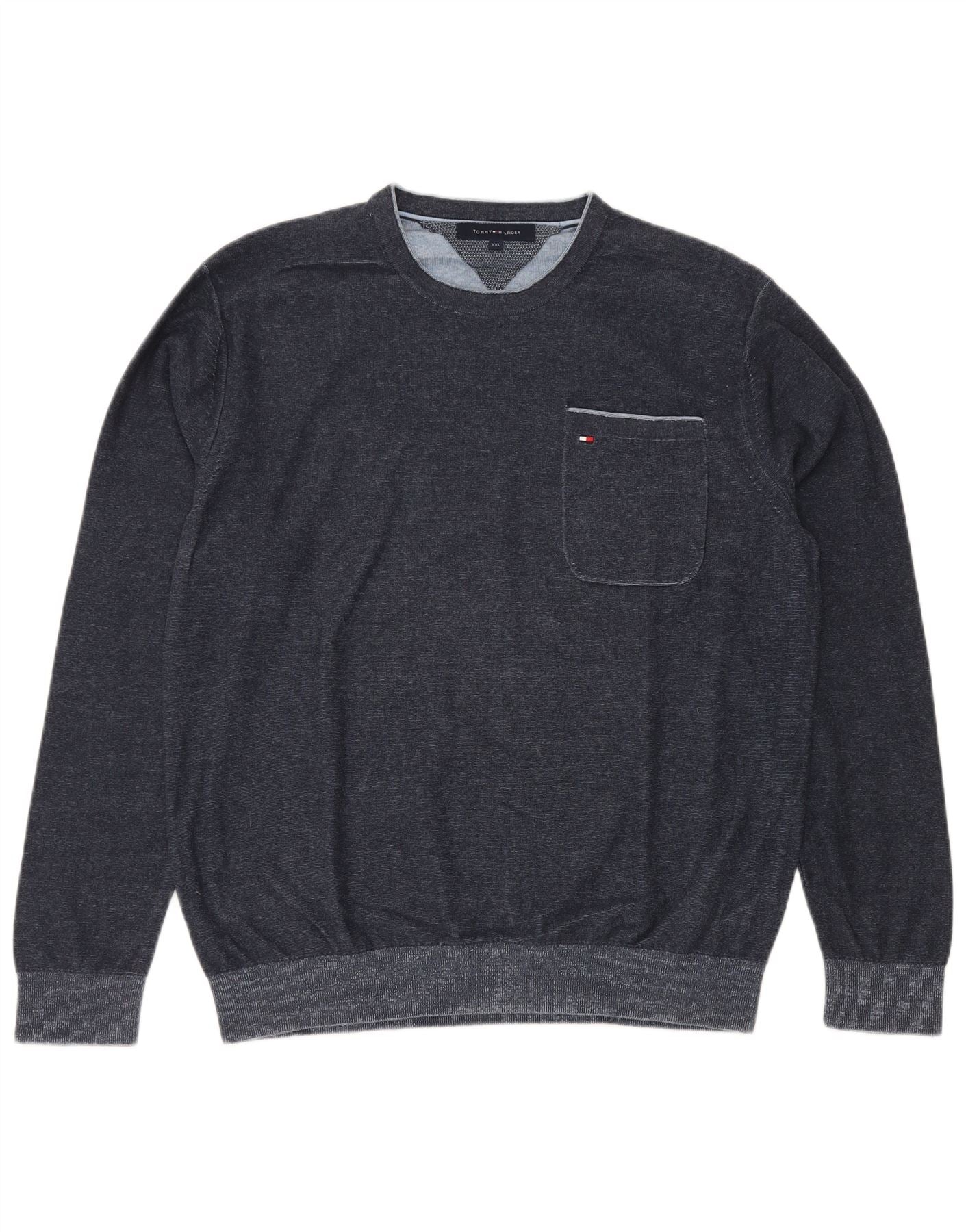 TOMMY HILFIGER Maglione maglione girocollo da uomo 2XL cotone blu navy