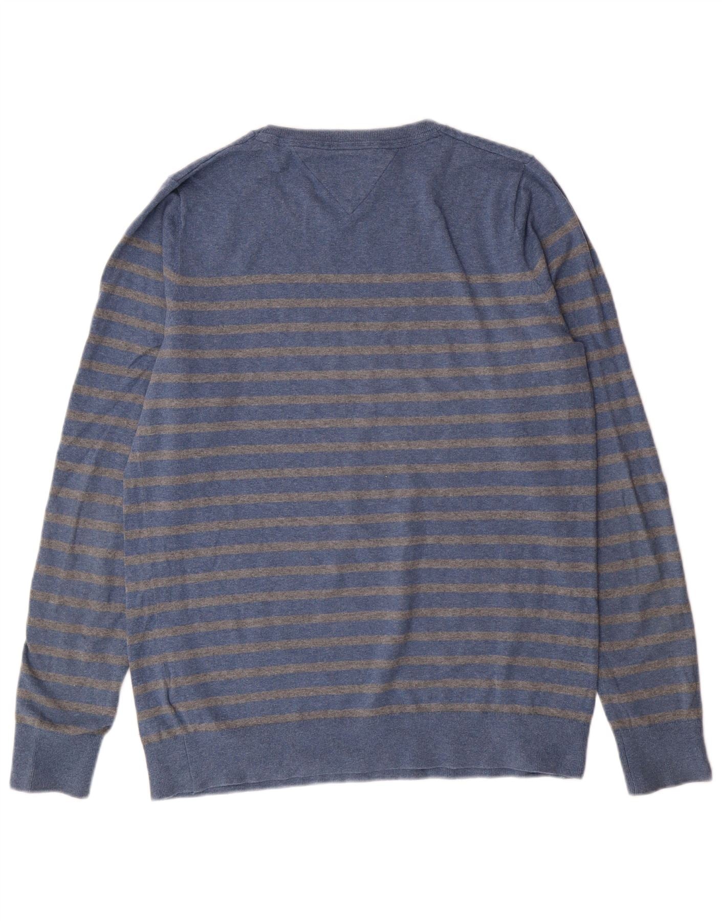 Maglione maglione girocollo da uomo Tommy Hilfiger grande cotone a righe blu