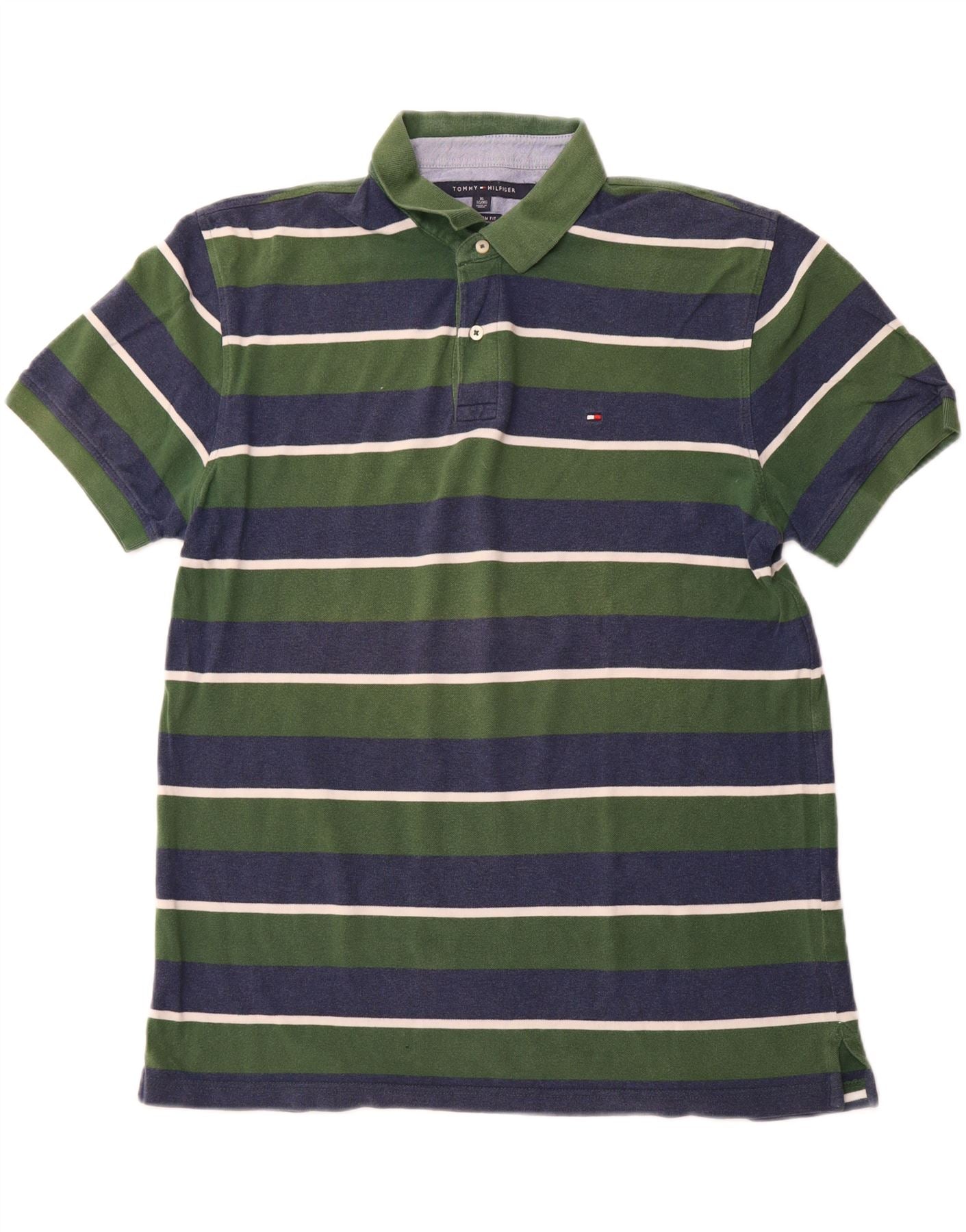 TOMMY HILFIGER Polo da uomo su misura XL in cotone a righe verdi