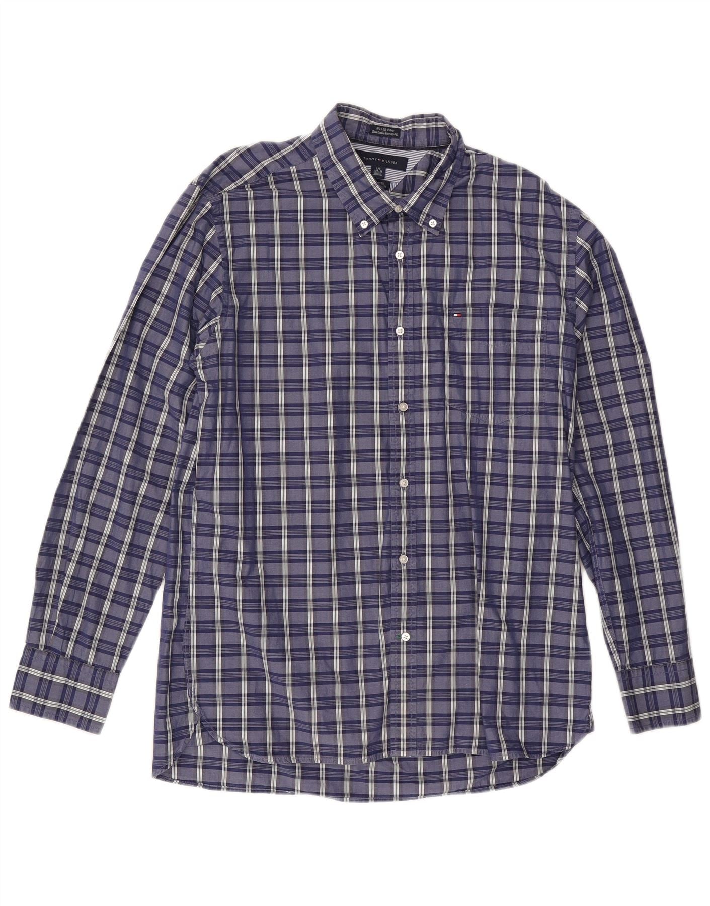 TOMMY HILFIGER Camicia da uomo su misura taglia 16 1/2 grande quadri blu