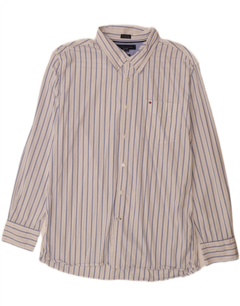 TOMMY HILFIGER Camicia da uomo su misura taglia 17 1/2 XL cotone a righe blu