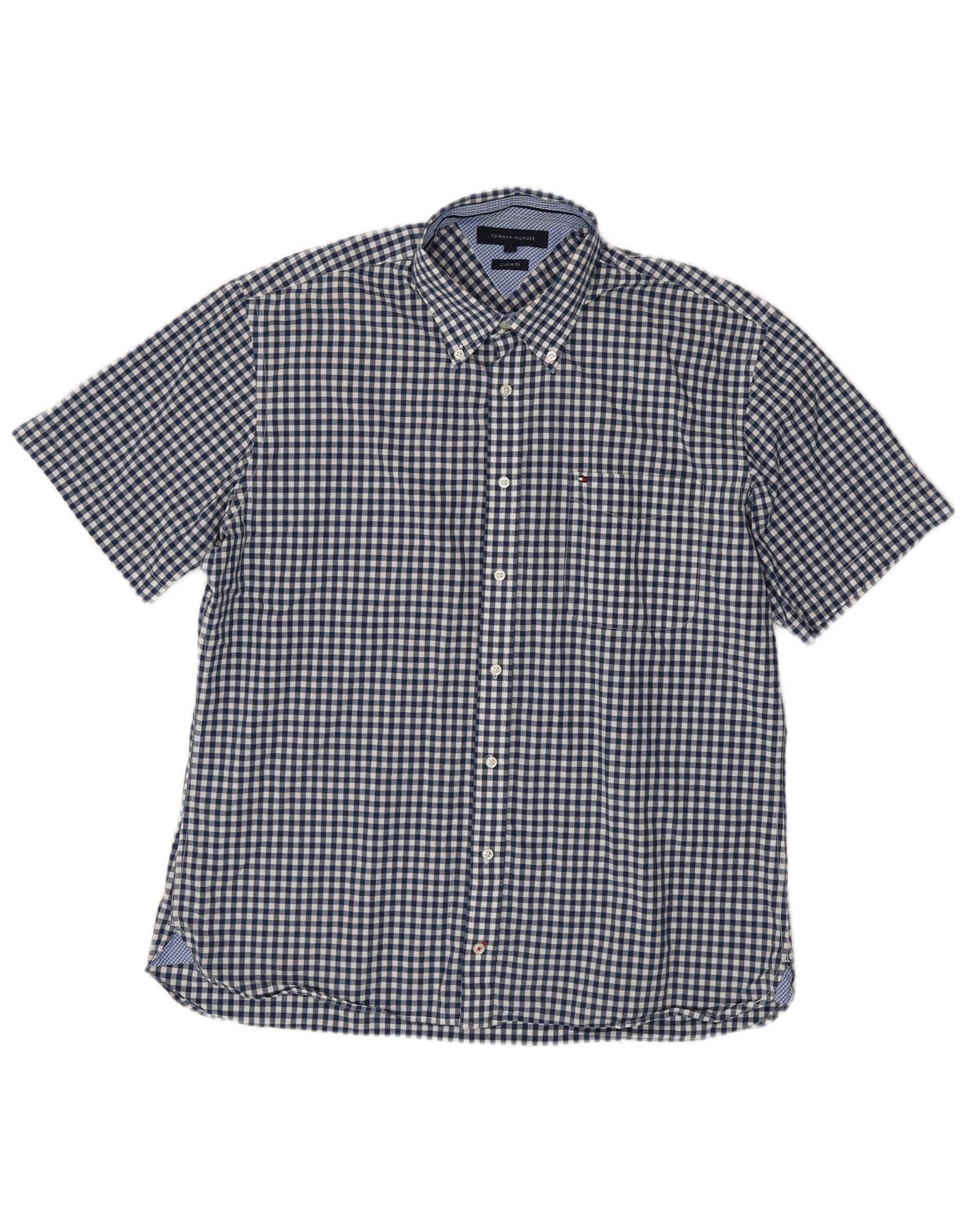 TOMMY HILFIGER Camicia a maniche corte personalizzata da uomo XL a quadretti blu navy