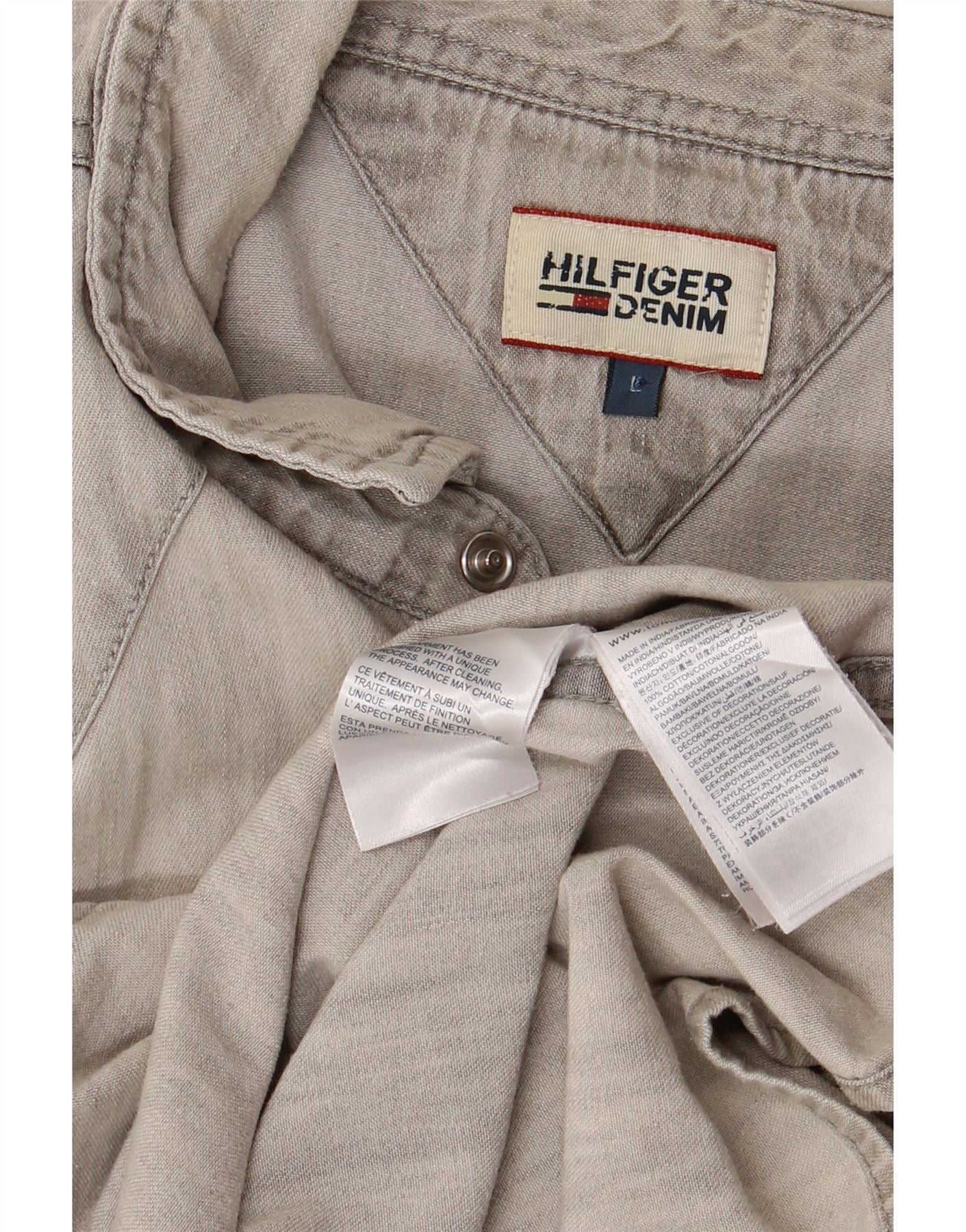 TOMMY HILFIGER Camicia di jeans da uomo grande in cotone grigio