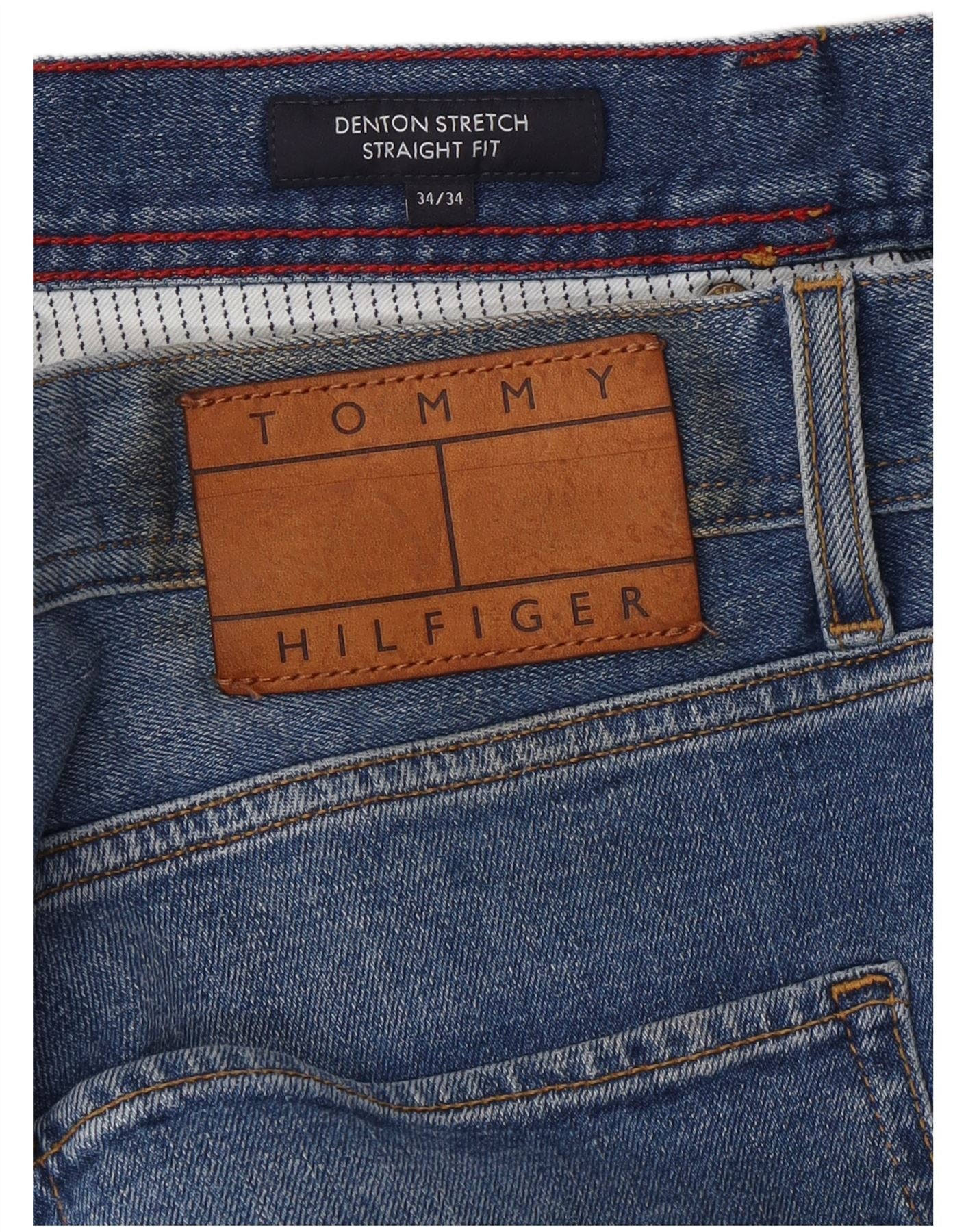 TOMMY HILFIGER Jeans dritti invecchiati da uomo W32 L32 cotone blu