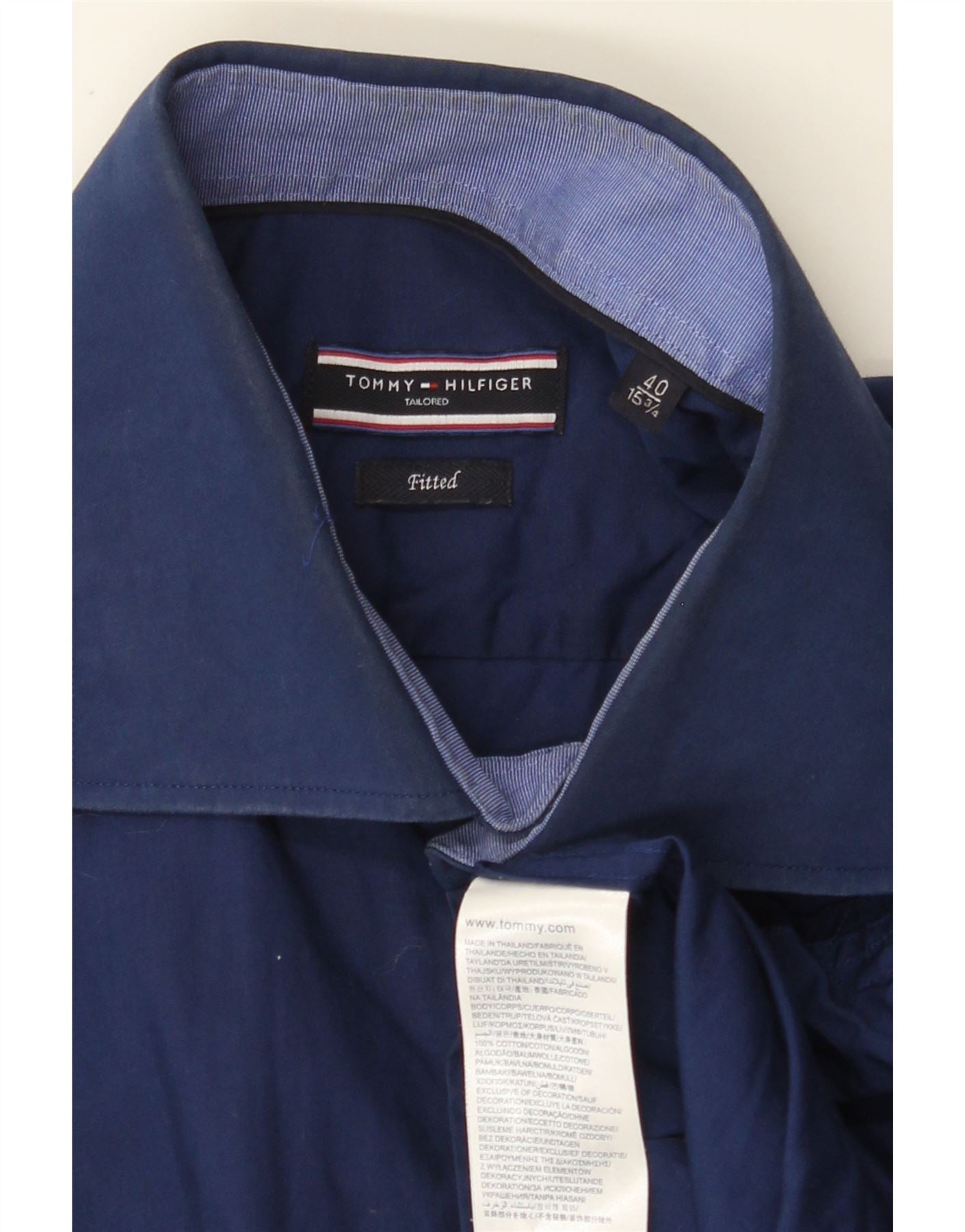 TOMMY HILFIGER Camicia aderente da uomo taglia 40 15 3/4 cotone blu navy medio