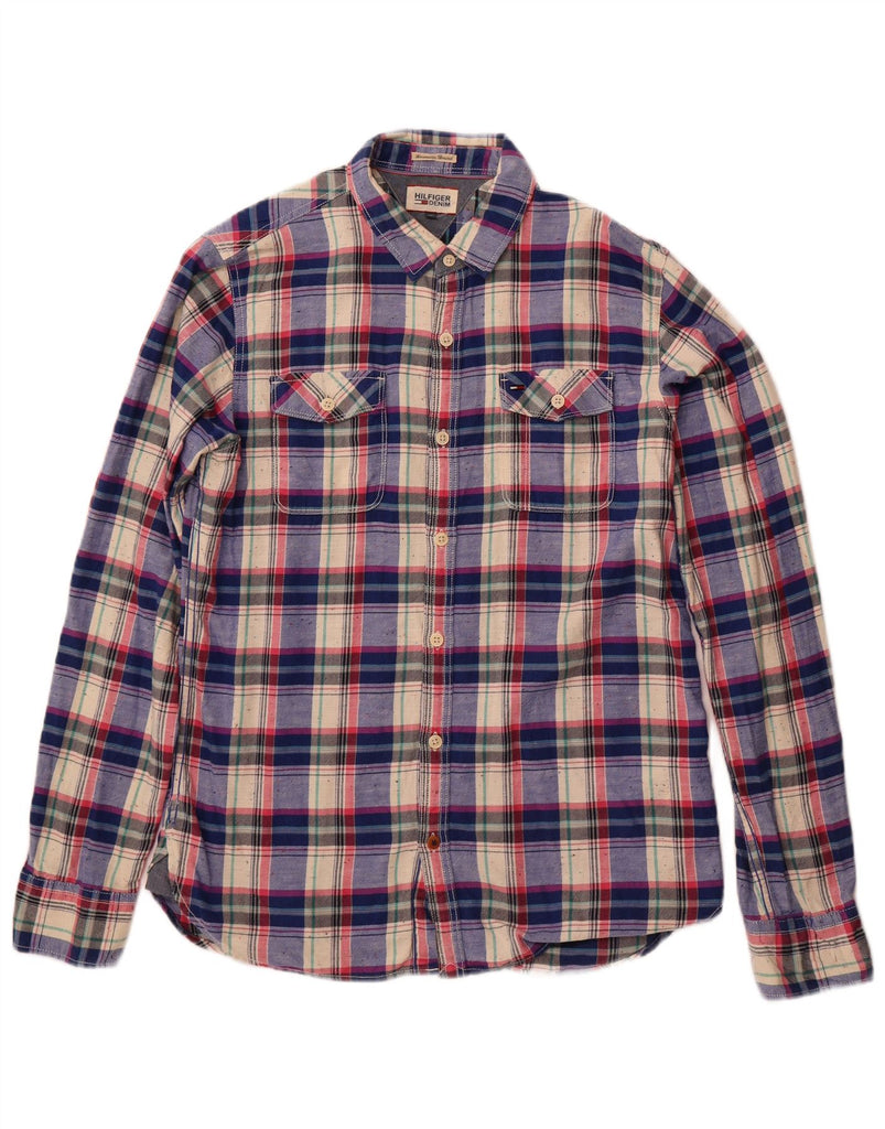 TOMMY HILFIGER Camicia da uomo in flanella di cotone a quadri blu medio