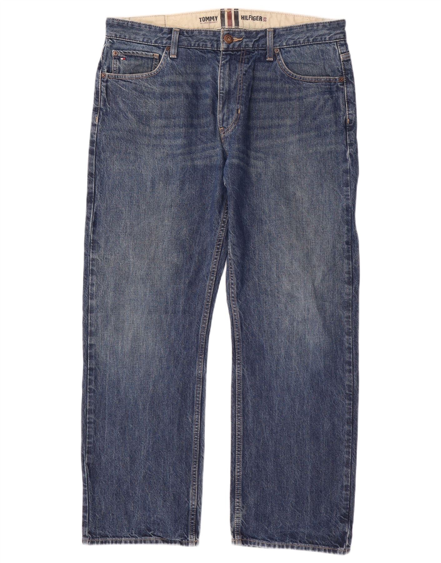 TOMMY HILFIGER Jeans dritti da uomo Freedom dalla vestibilità rilassata W35 L30 cotone blu