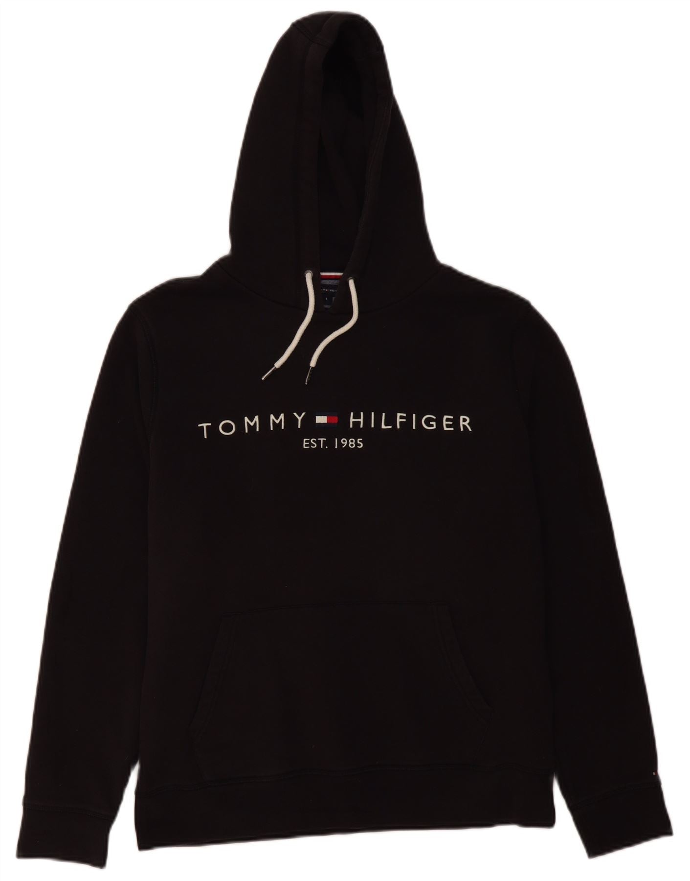 TOMMY HILFIGER Maglione con cappuccio grafico da uomo grande cotone nero