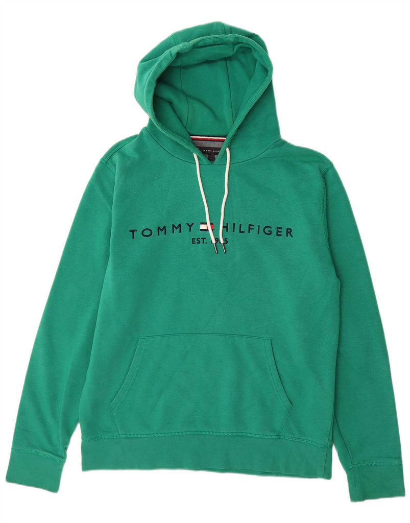 TOMMY HILFIGER Mens Graphic Hoodie Jumper Large Green Cotton