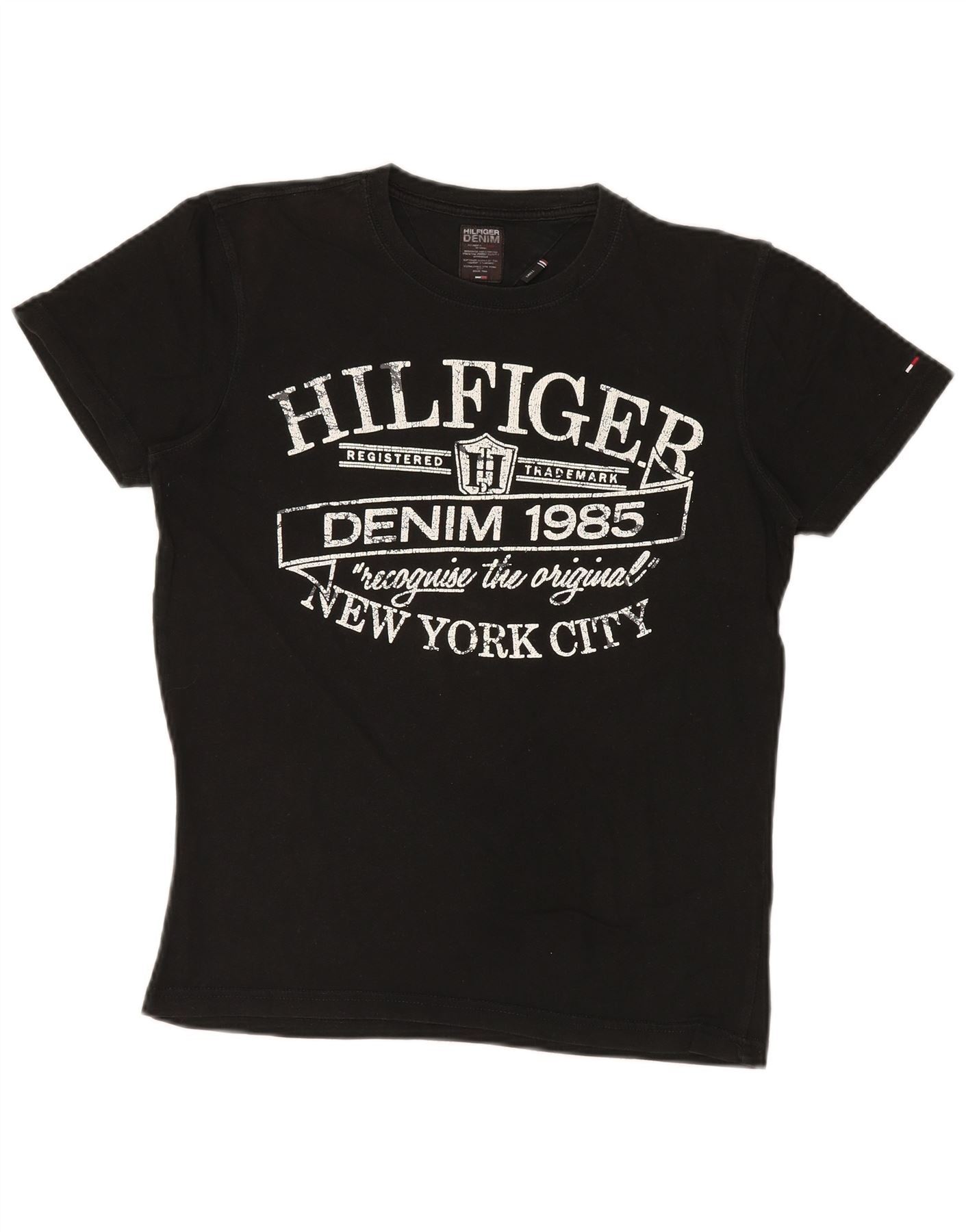 TOMMY HILFIGER T-shirt grafica da uomo Top piccola in cotone nero