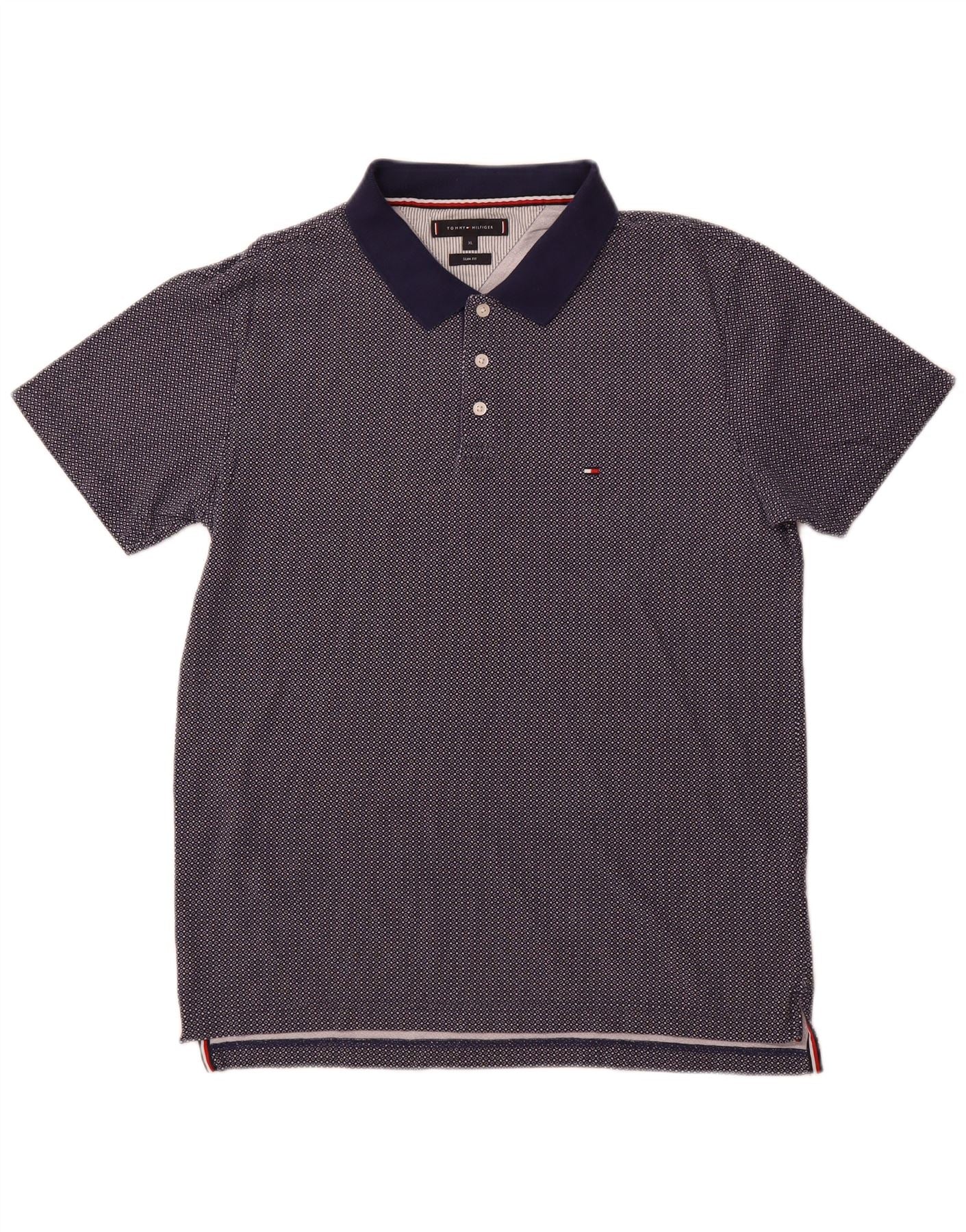 TOMMY HILFIGER Polo da uomo XL in cotone maculato blu navy