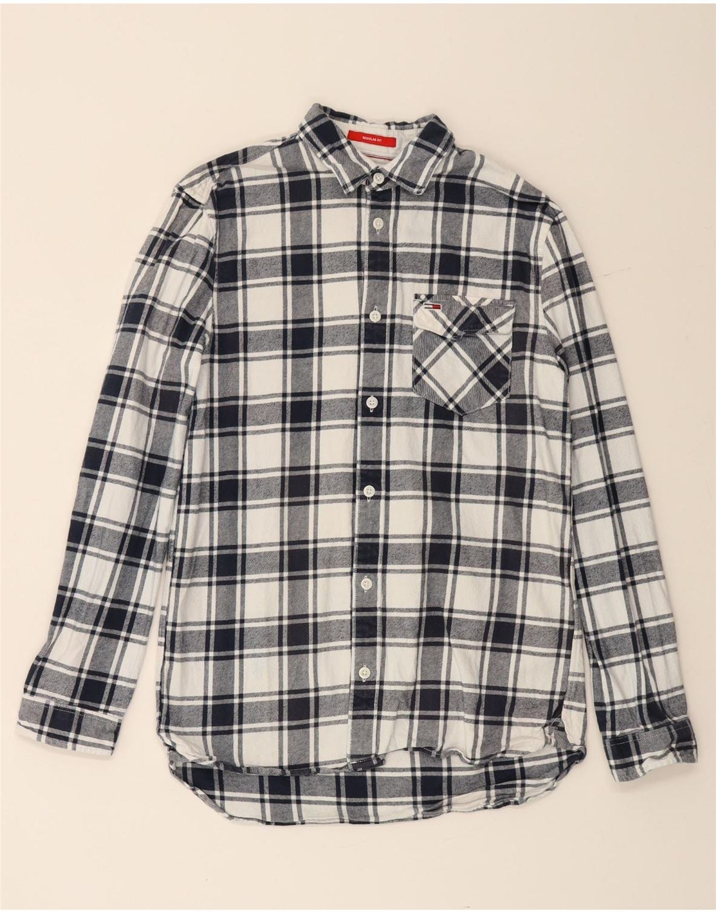 TOMMY HILFIGER Camicia da uomo in flanella vestibilità regolare piccola in cotone a quadri blu navy