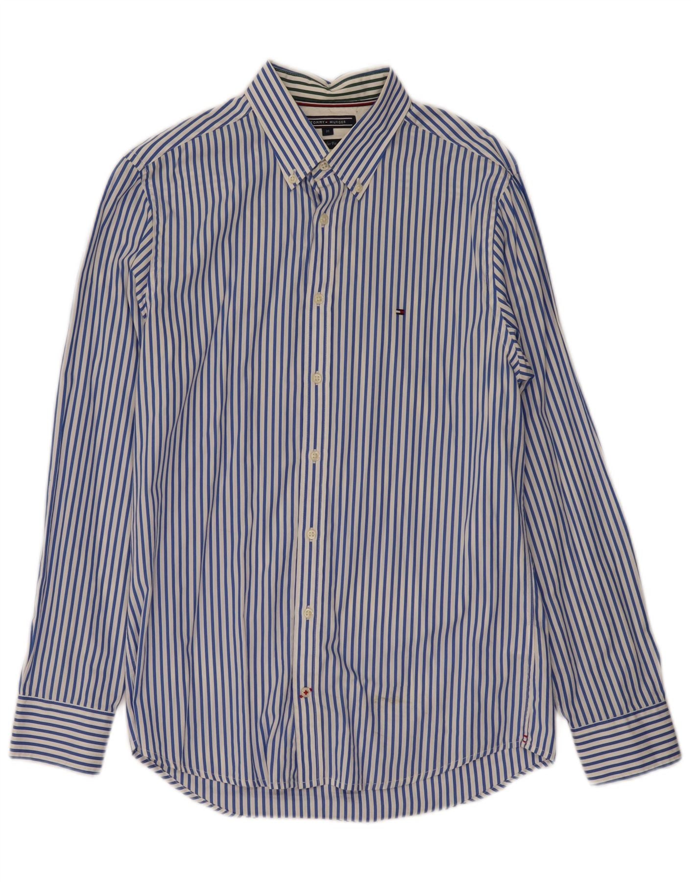 TOMMY HILFIGER Camicia da uomo vestibilità regolare in cotone gessato blu medio