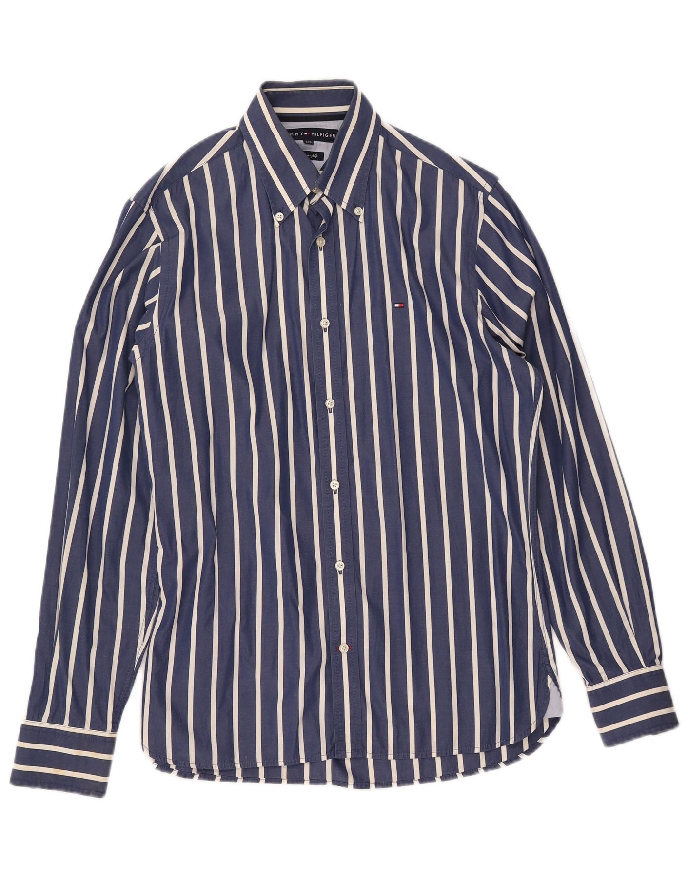 TOMMY HILFIGER Camicia da uomo piccola in cotone gessato blu navy anni '80