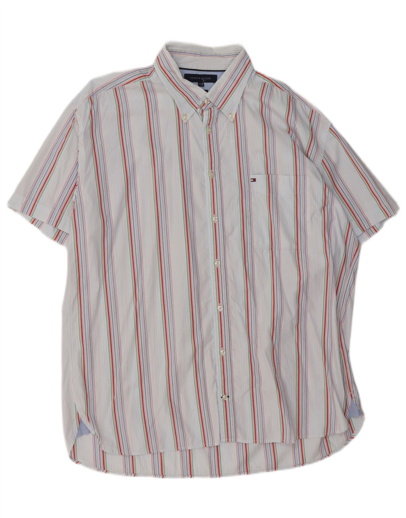 TOMMY HILFIGER Camicia a maniche corte da uomo 2XL Cotone a righe multicolore