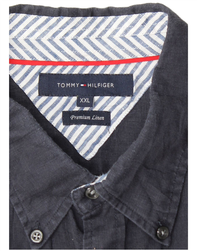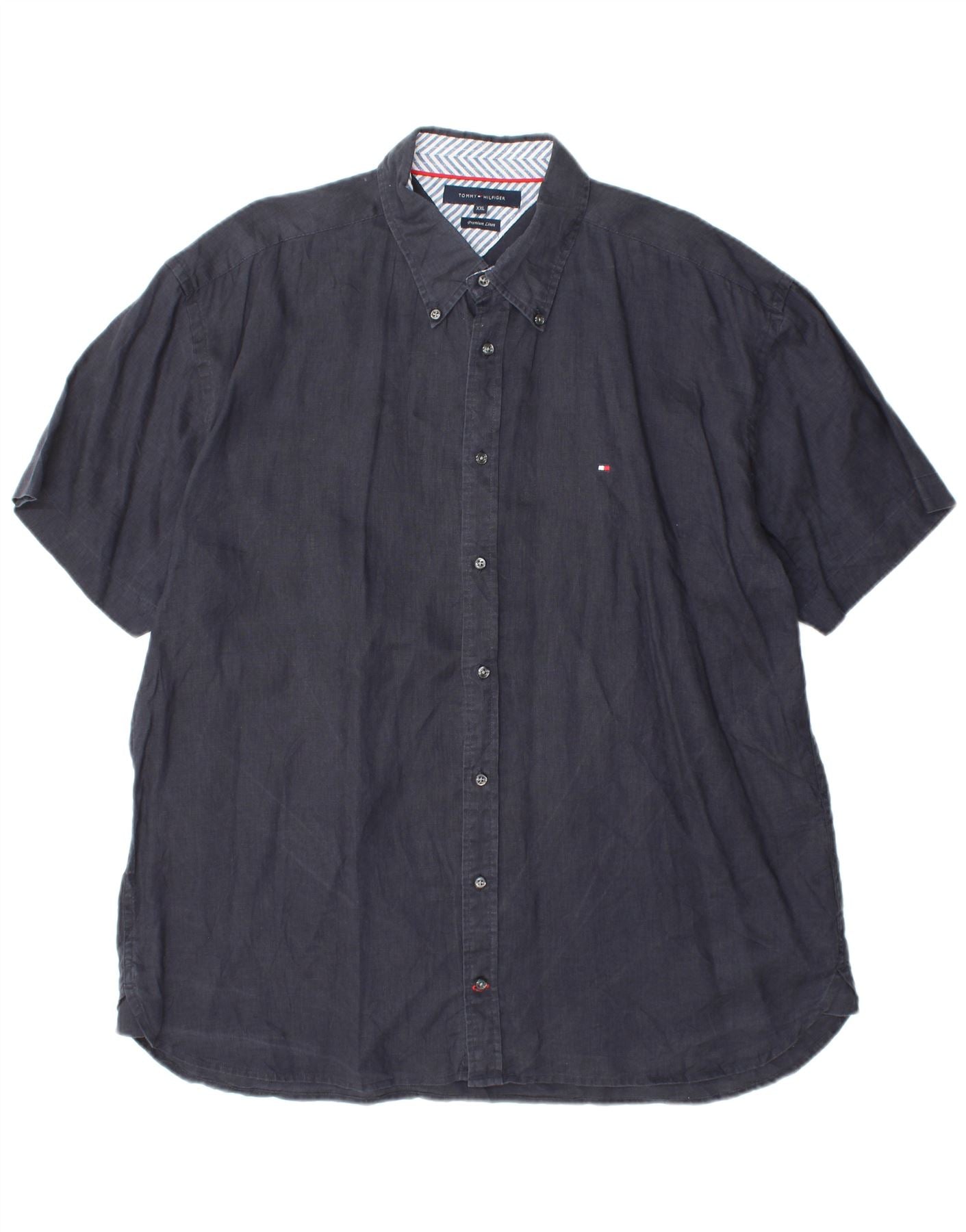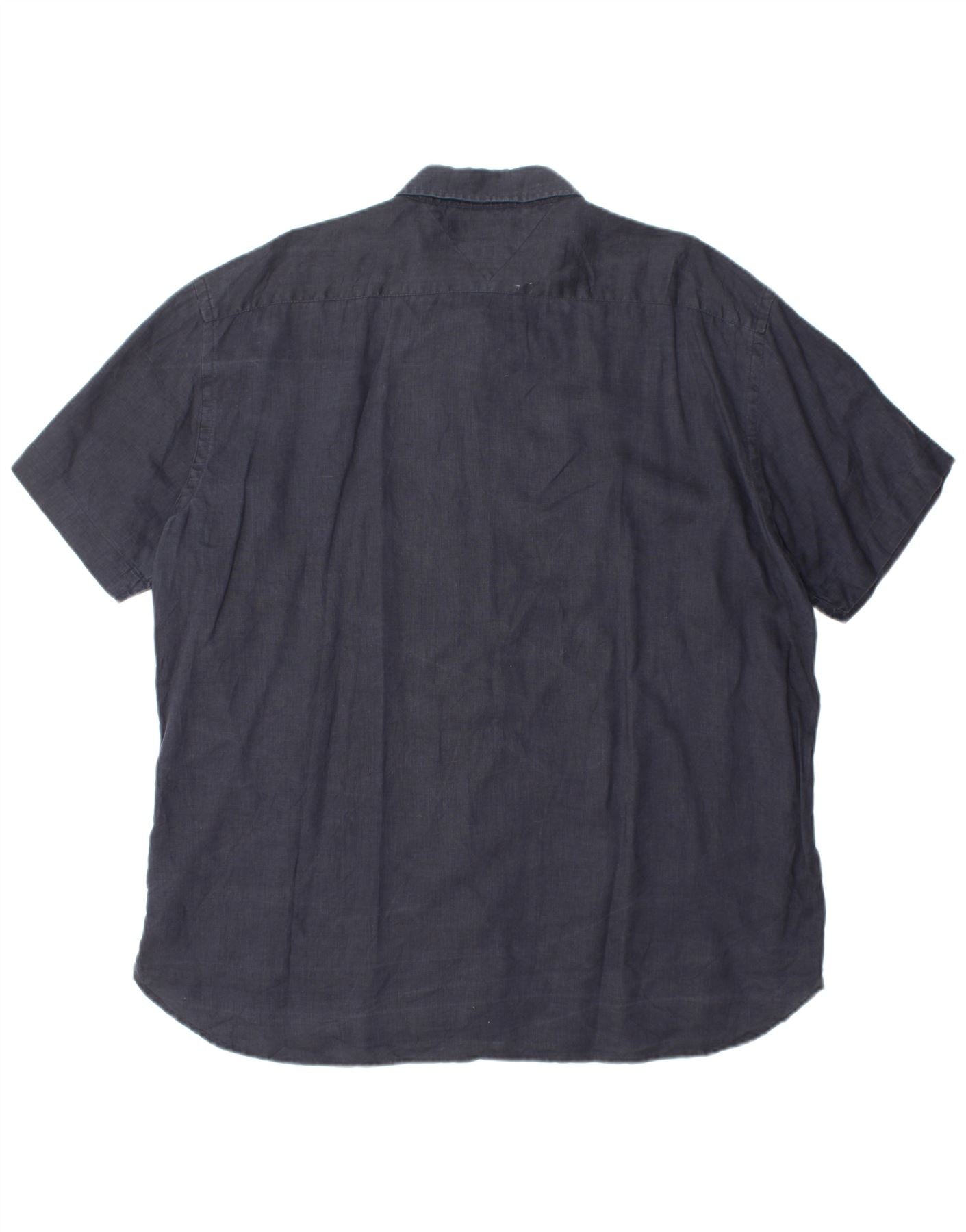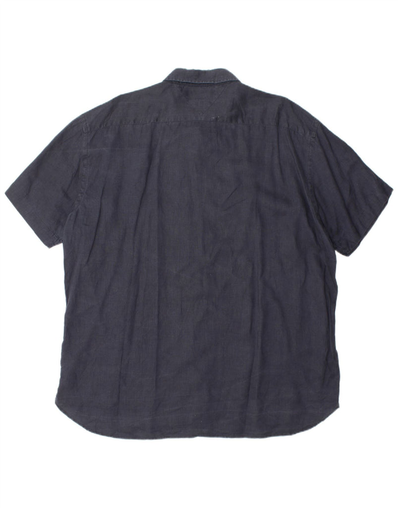 TOMMY HILFIGER Camicia a maniche corte da uomo 2XL Lino blu navy