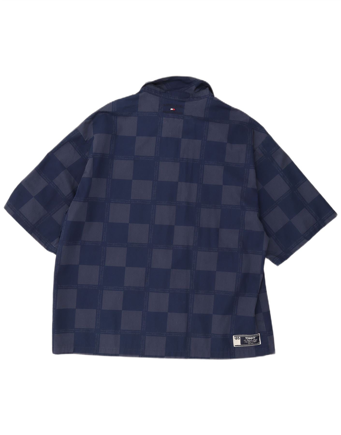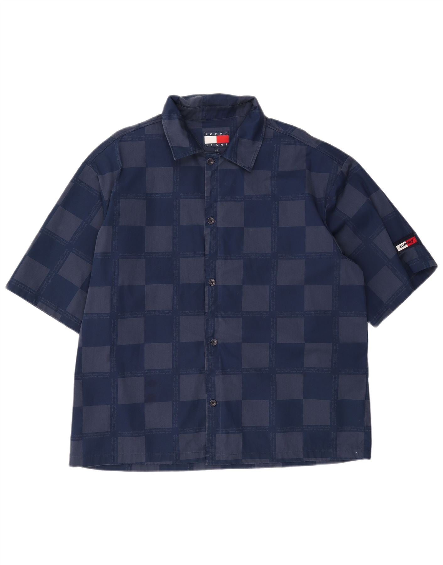 TOMMY HILFIGER Camicia a maniche corte da uomo Large in viscosa geometrica blu navy