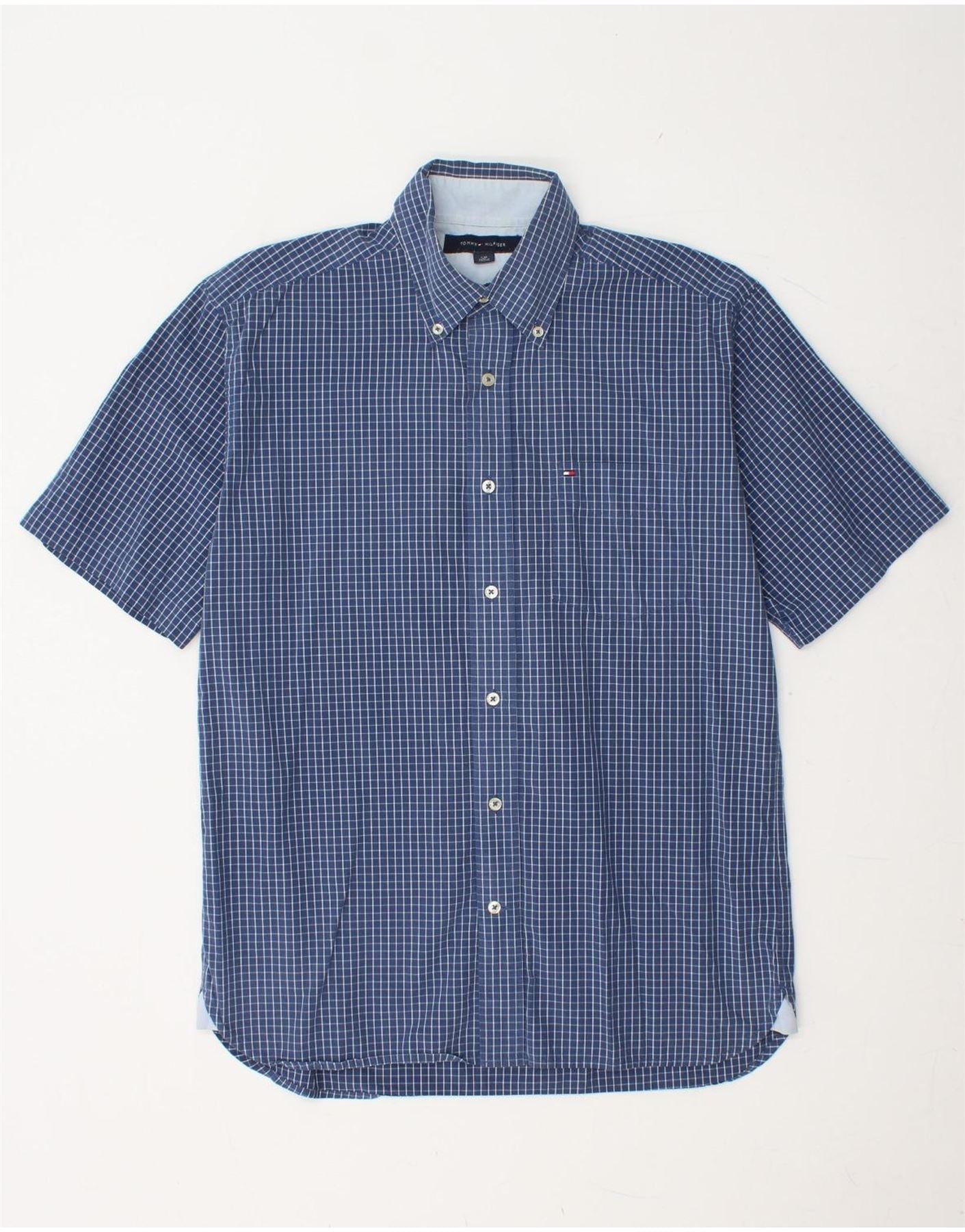 TOMMY HILFIGER Camicia a maniche corte da uomo in cotone a quadri blu piccolo