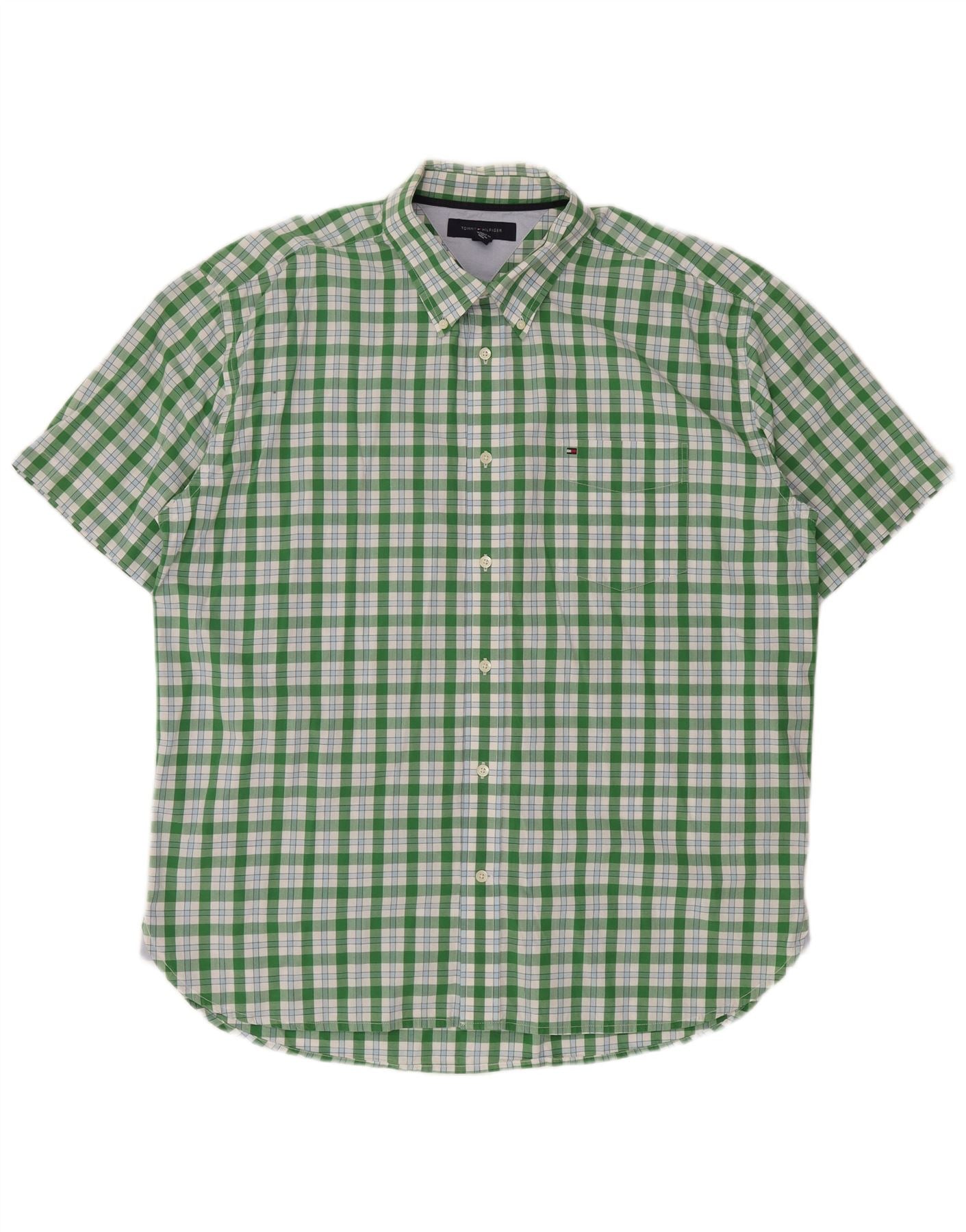Camicia a maniche corte da uomo Tommy Hilfiger XL in cotone a quadri verdi